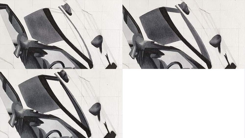 To make the sketch of the car, I used the grid method. This is a relatively simple technique to make it easier to get the proportions of the car correct. But feel free to use any other sketching technique.