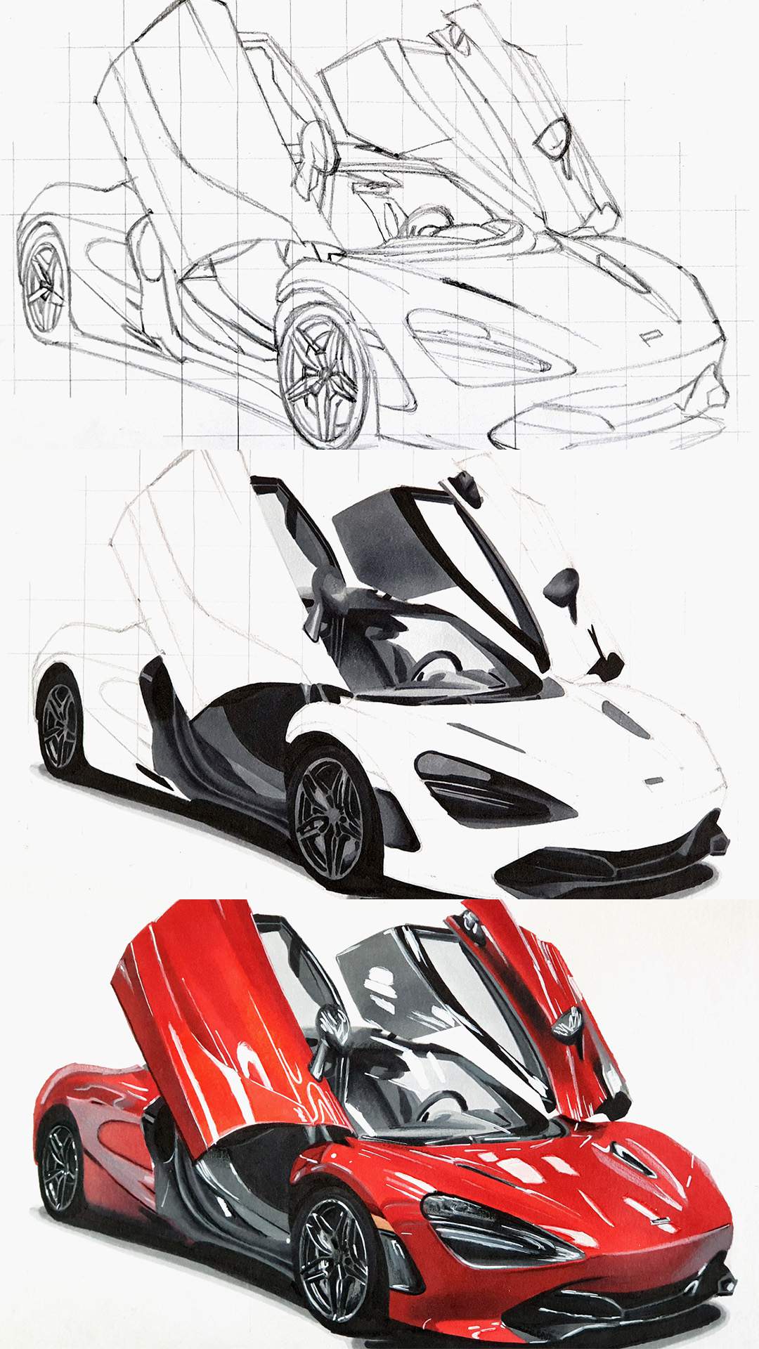 In this article, I'm going to show you how to draw a car, specifically how to draw a McLaren 720S.