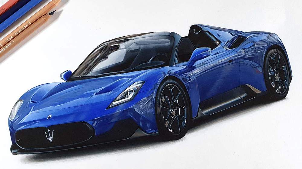 Next, I created one realistic drawing of a car with each set of colored pencils. While making these drawings, I tested the colored pencils on all the test criteria.
