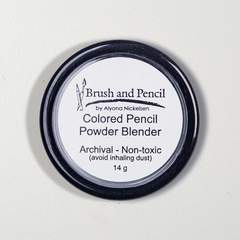 To use a powder blender, apply a small amount to a soft brush or sponge applicator and gently rub it over the colored pencil pigments on your paper.