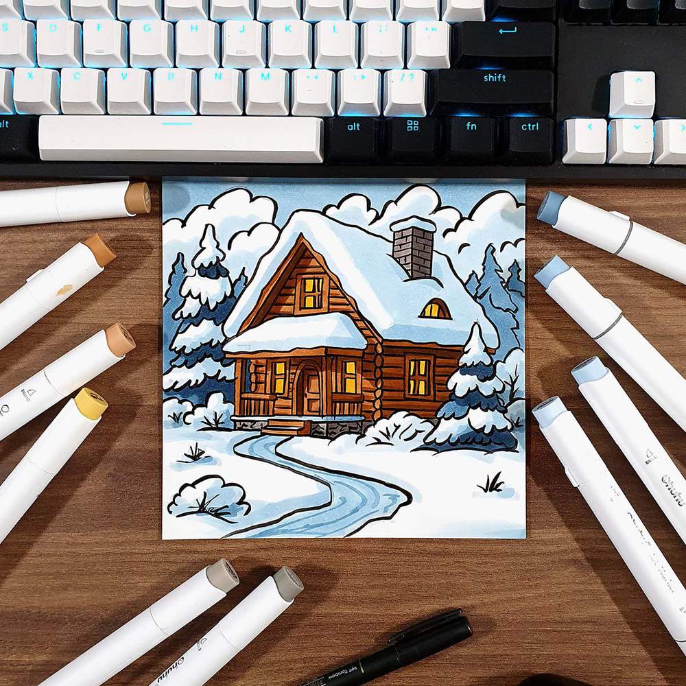 How to Draw a Cozy Winter House Scene Step by Step for Beginners