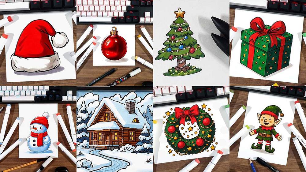 From classic characters to cozy winter scenes, these festive prompts will inspire you to fill your sketchbook with cheerful holiday magic.
