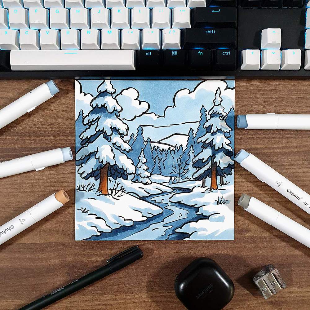 How to Draw a Winter Landscape - Easy Step-by-Step Guide for Beginners