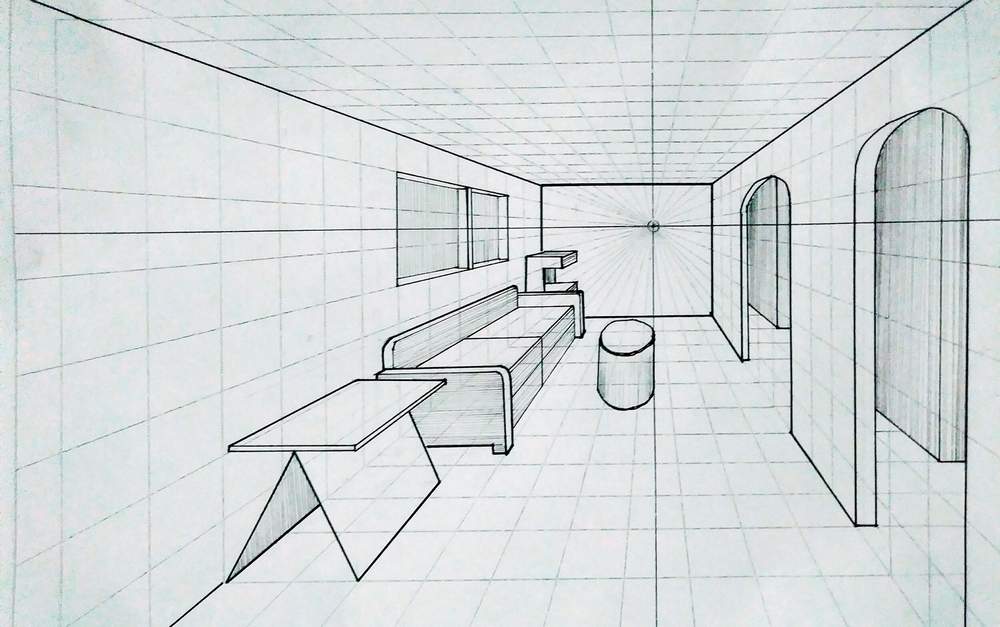 In a one-point perspective, all lines converge to a single point on the horizon, known as the vanishing point. This technique is commonly used in drawings where the front of an object is facing the viewer. The sides of the object, which recede into the distance, meet at the vanishing point, creating a strong sense of depth.