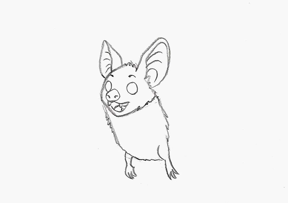To draw a bat, I first sketched the basic shapes of the head and the body.