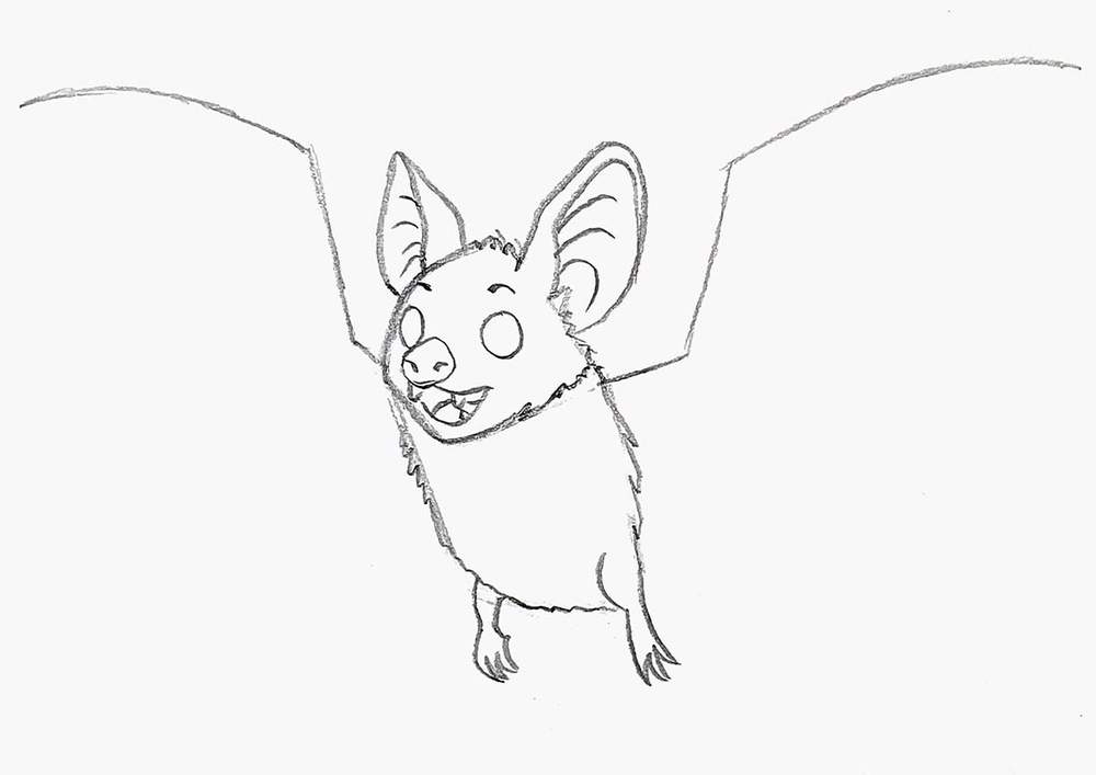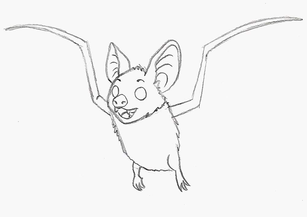 Now, it's time to make it look more bat-like by adding the wings (my favorite part of this drawing).
