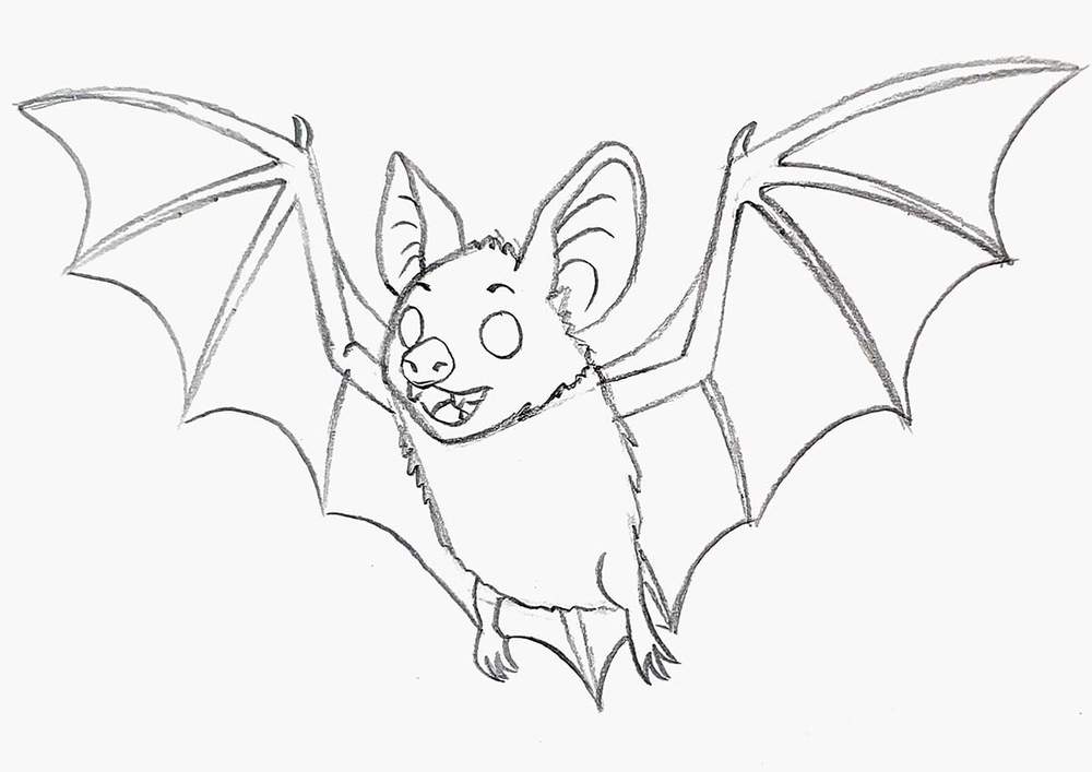 With the wings finished, it’s time to start outlining the sketch of the bat.