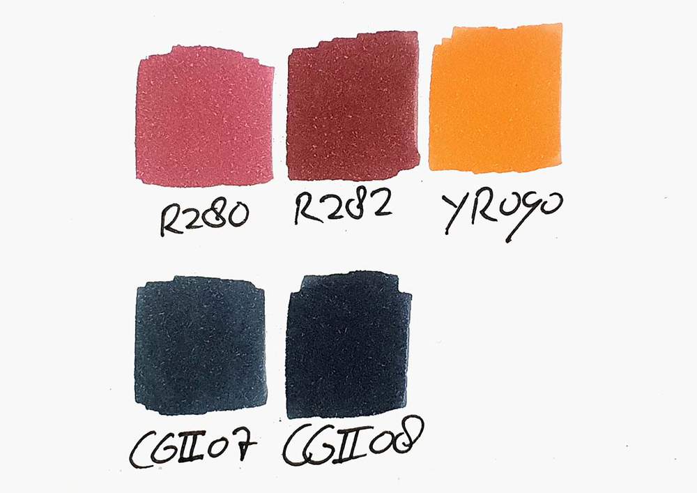 I first colored the eyes of the bat with Peach Pie (YR090) and the ears with Currant (R280).