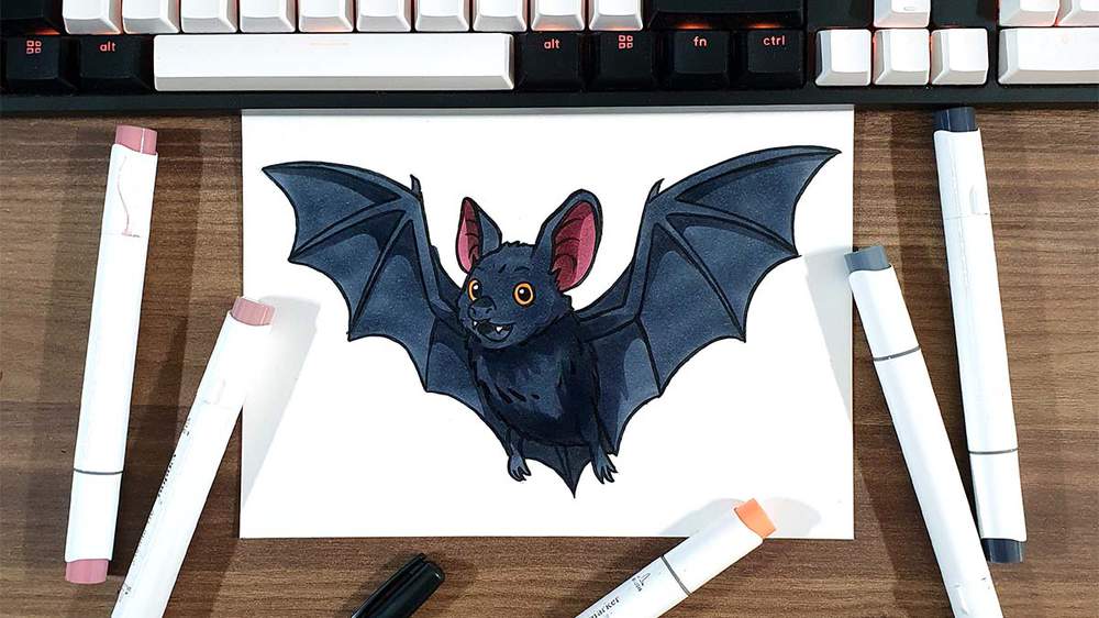 Next, I colored the bat using Ohuhu Honolulu markers, my favorite alcohol-based markers!
