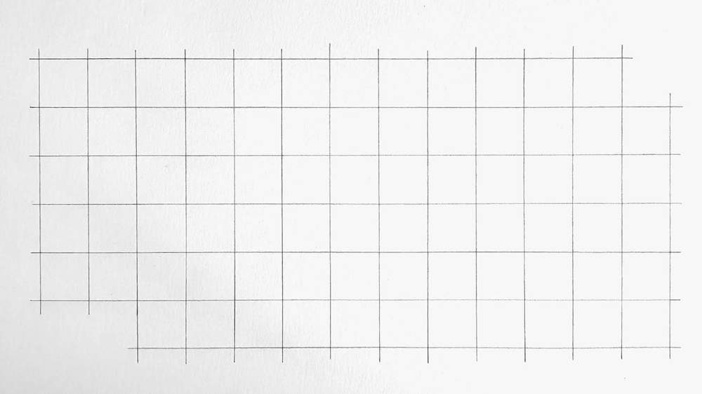 Next, I replicate that same grid onto my paper. I only sketched the squares I needed for the drawing to save some time erasing the unnecessary lines.