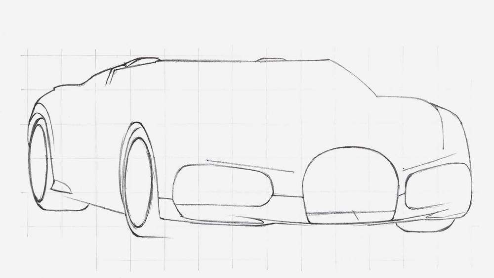 The first step of drawing a Bugatti is sketching the outlines of the car.