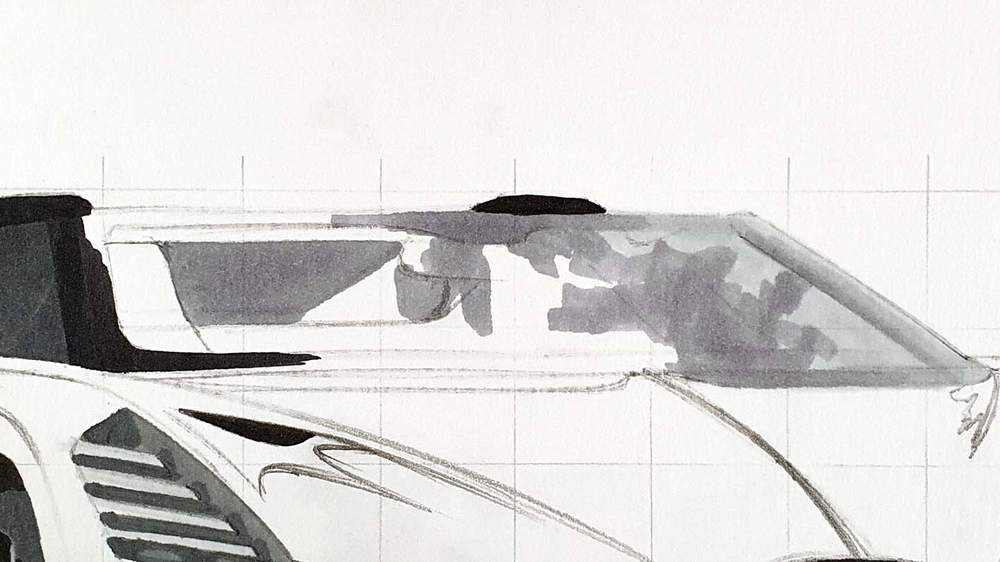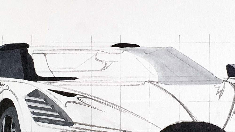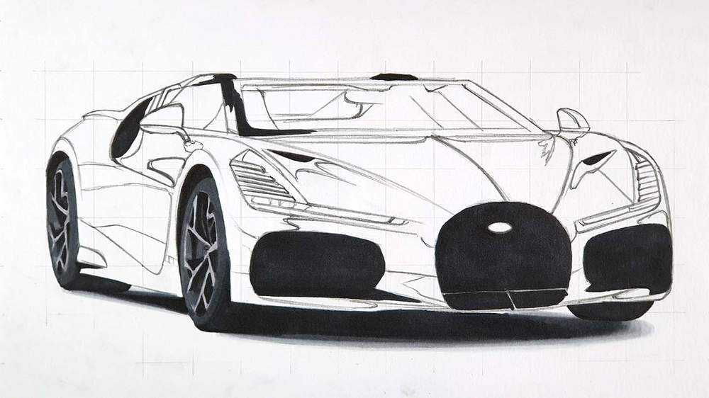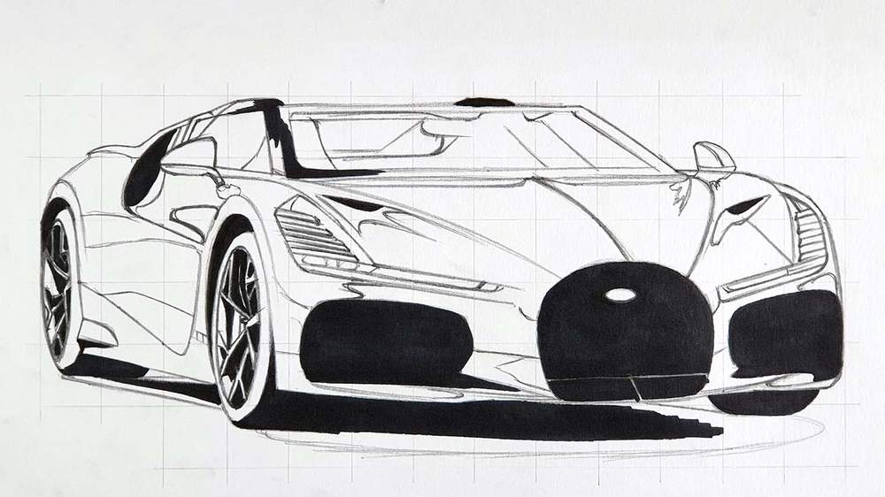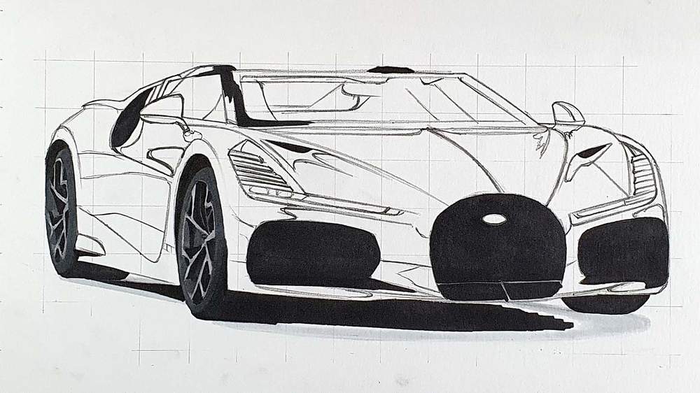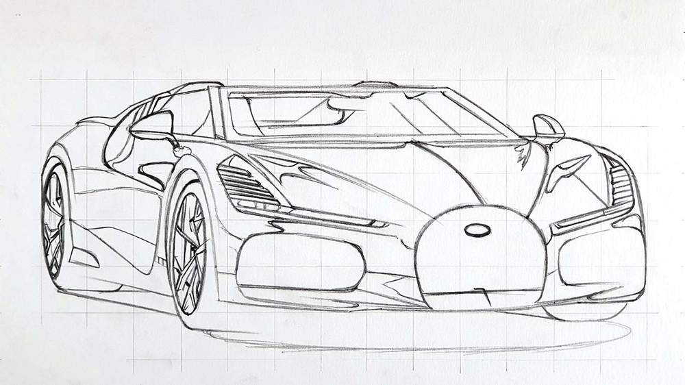 When I was done, I started sketching the outline of the Bugatti Mistral. I started with the bigger shapes before adding more and more details.