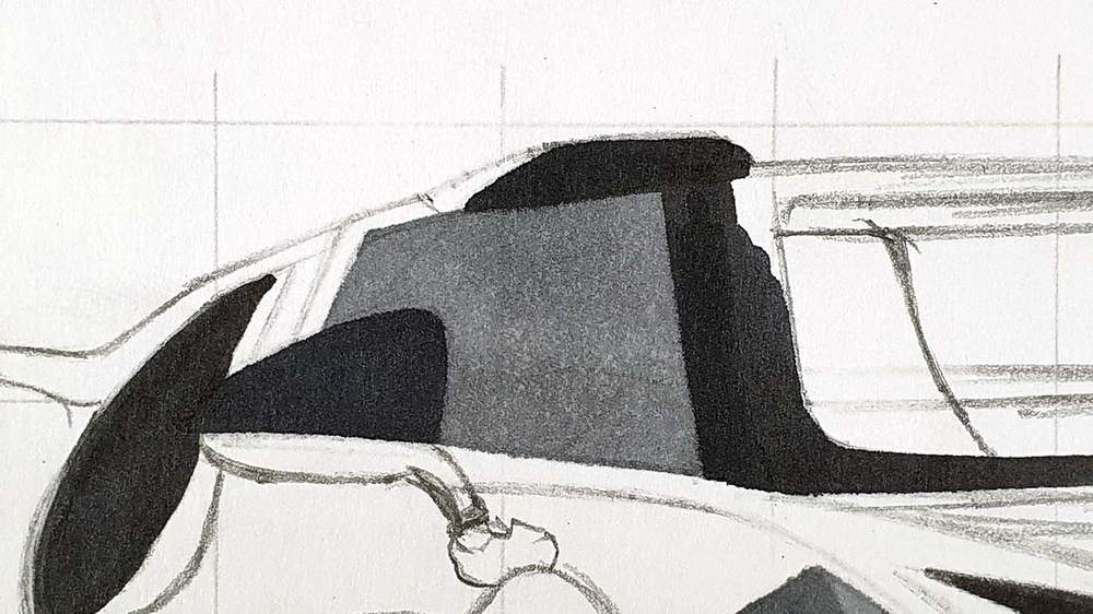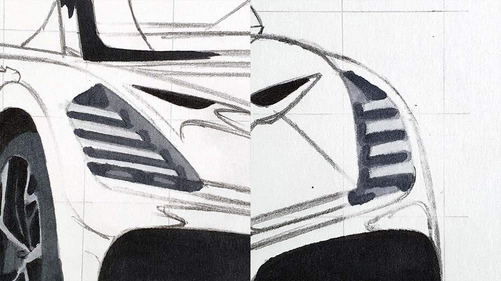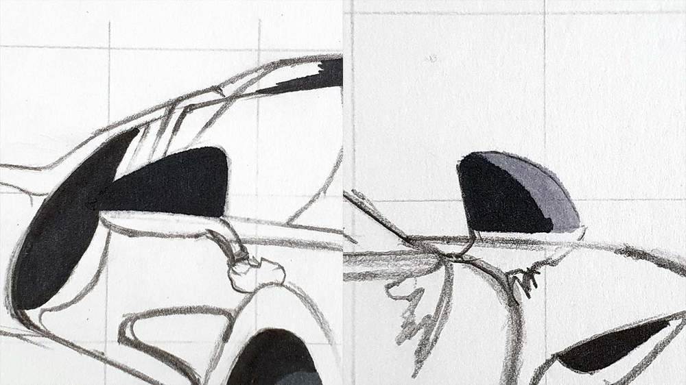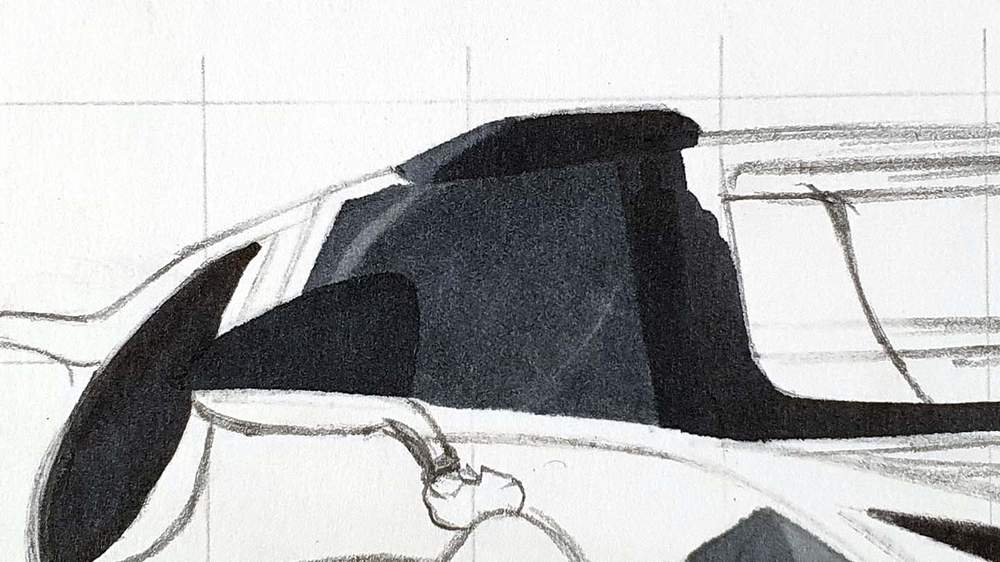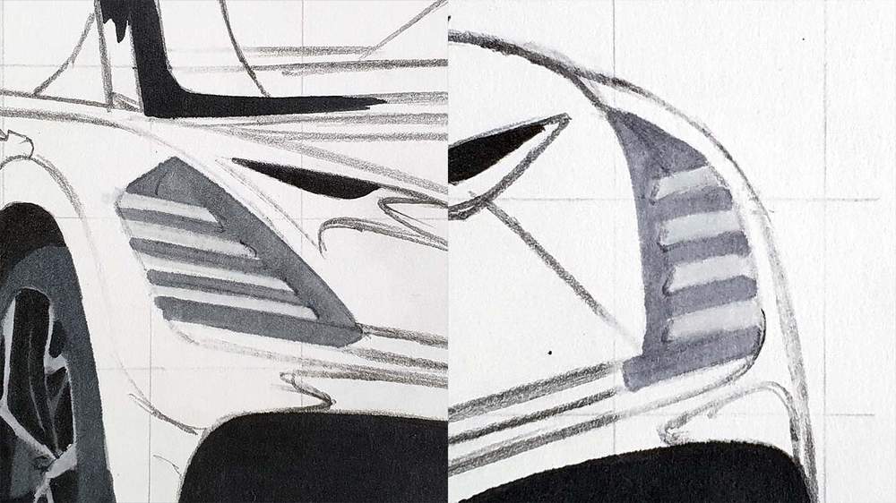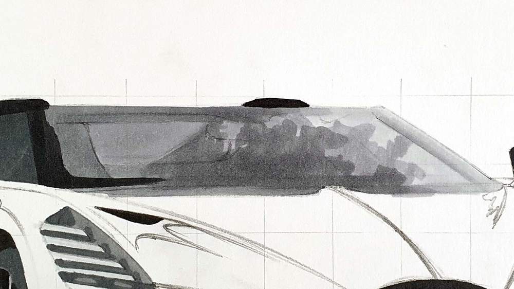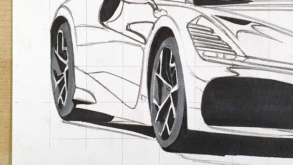 When I was done, I started sketching the outline of the Bugatti Mistral. I started with the bigger shapes before adding more and more details.