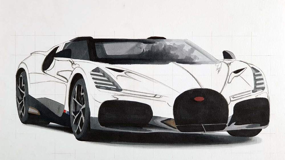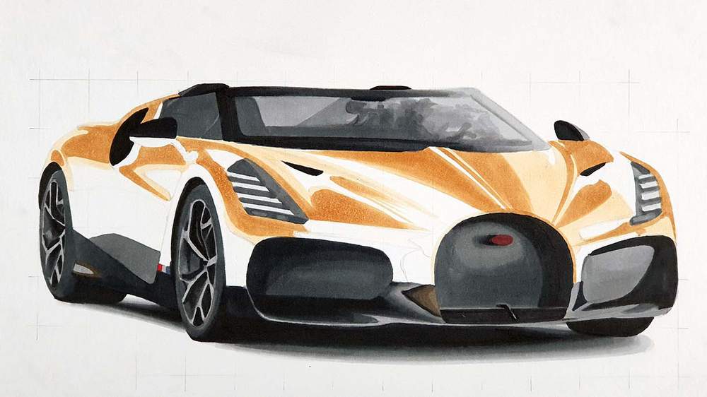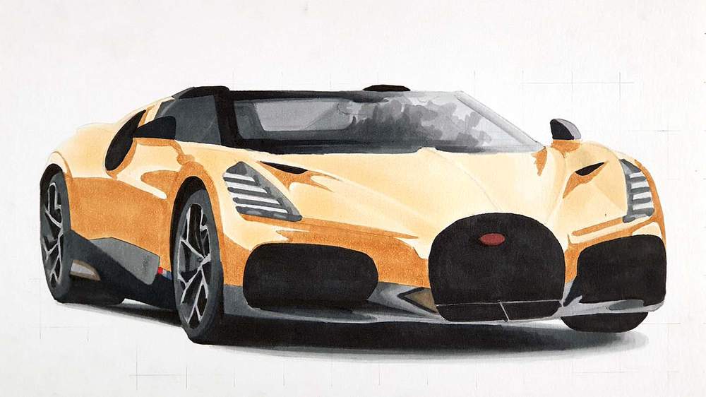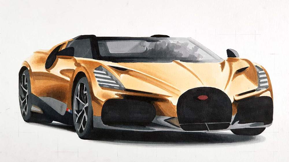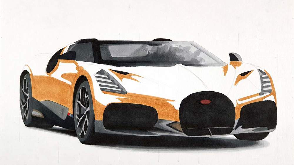 Now that the sketch is done it's time to start coloring the Bugatti.