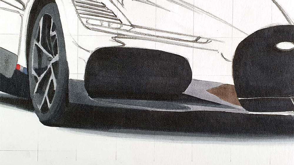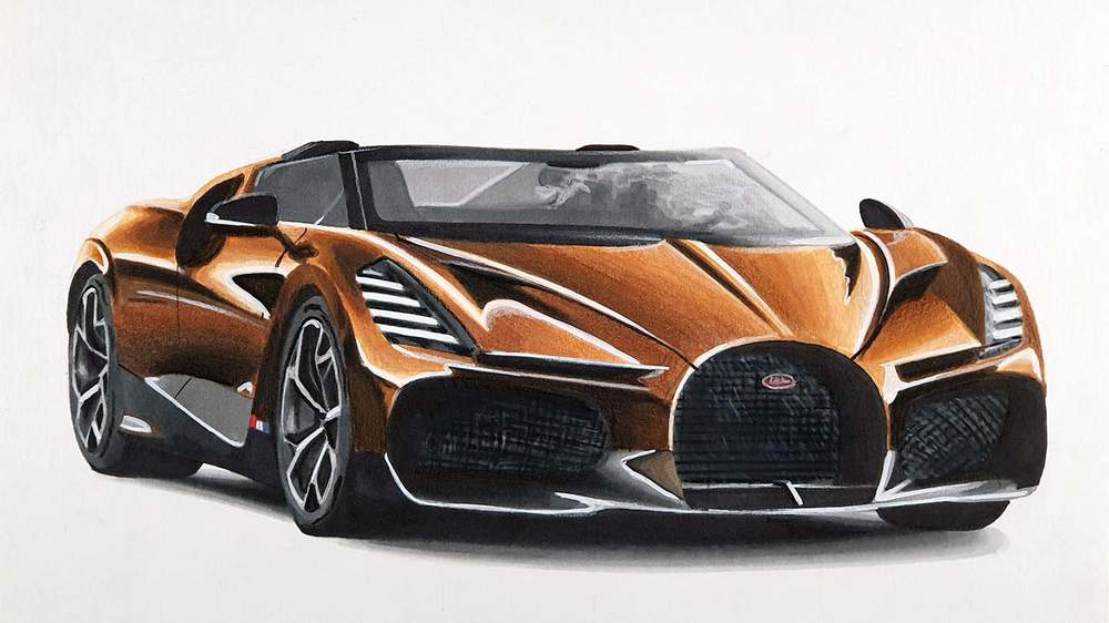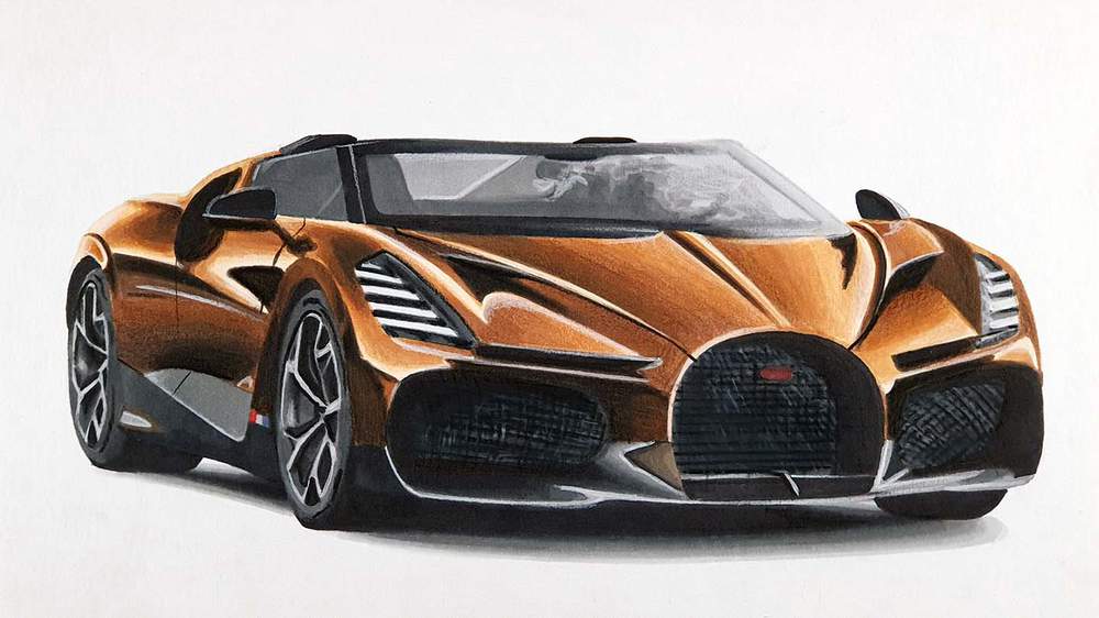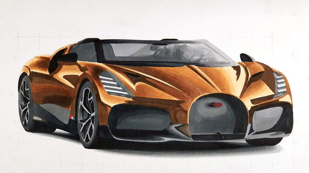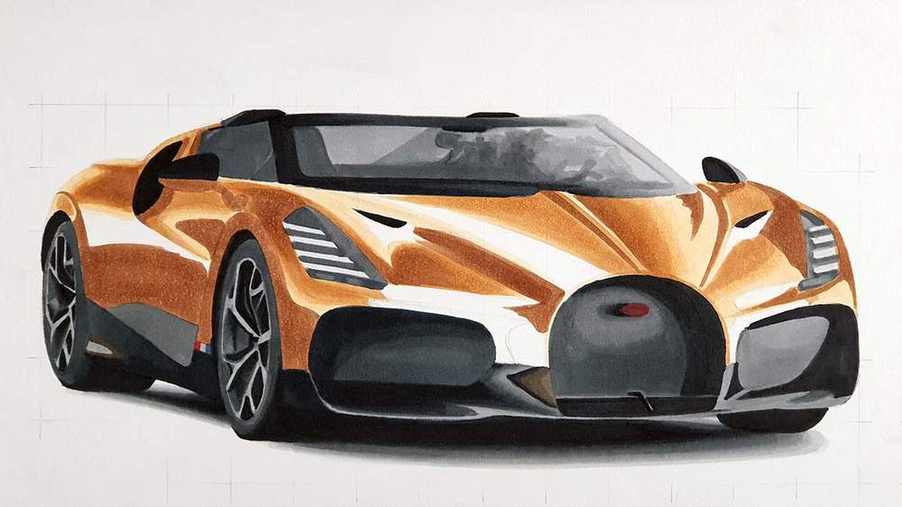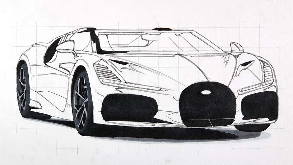 Now that the sketch is done it's time to start coloring the Bugatti.