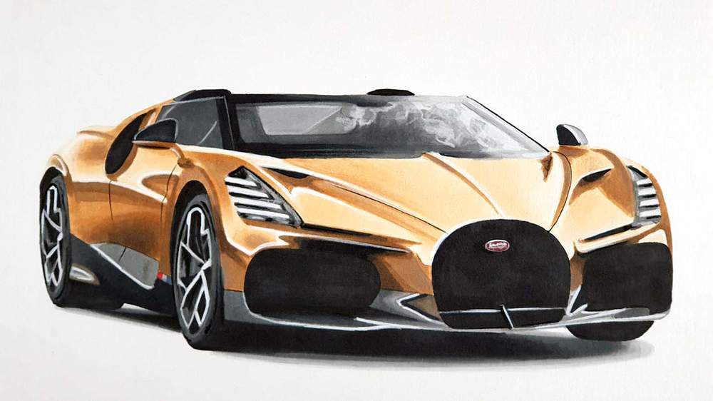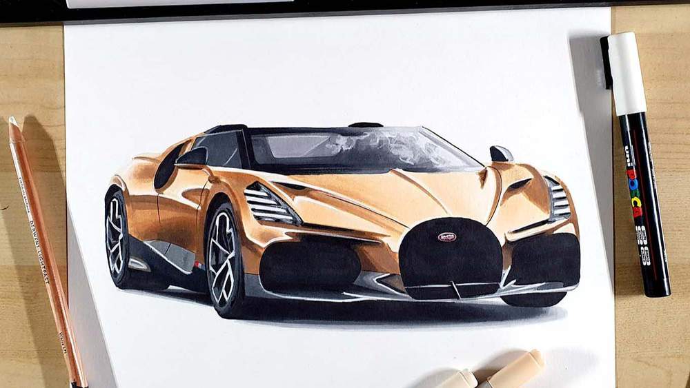 In this guide, I'm going to show you how I drew this realistic Bugatti Mistral in this beautiful light gold color.