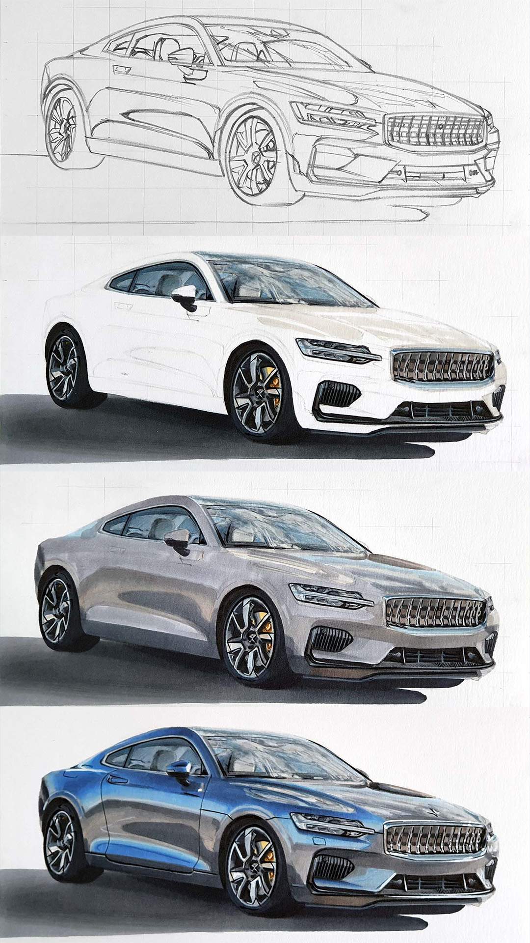 The car we're going to draw in this tutorial is this beautiful Polestar 1 I saw a while back.