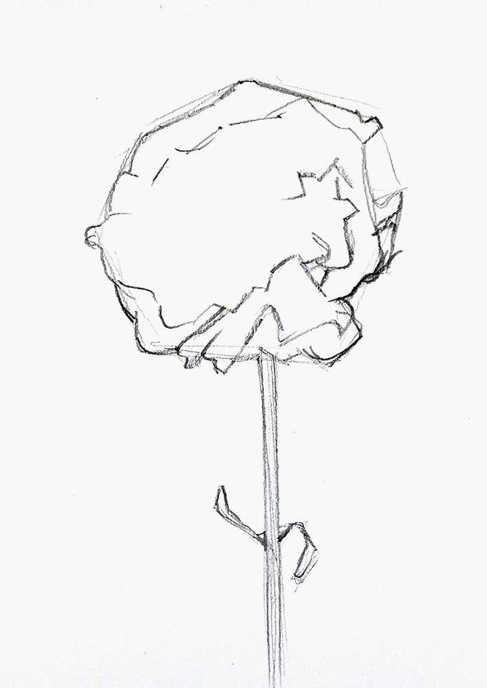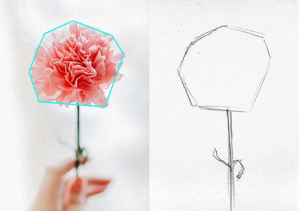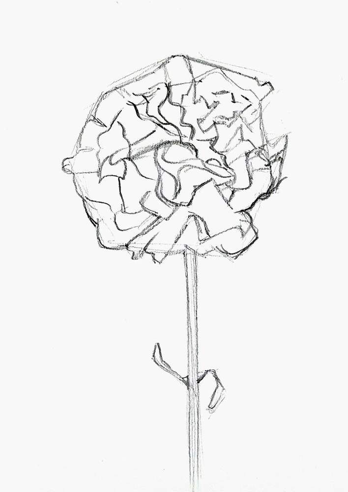 To sketch a flower like a carnation, I like to sketch the basic shape of it first.