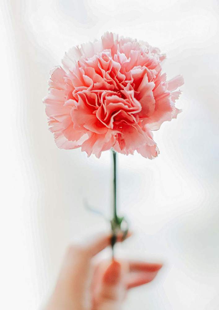 To draw a carnation, you first sketch the basic outline. Then, you sketch the petals and the stem. Next, you color the carnation with markers, building the colors up from light to dark. And to finish it off, you add a few details with colored pencils and add a few white highlights.