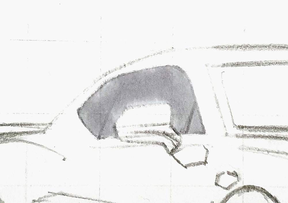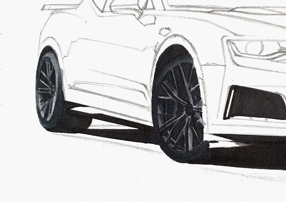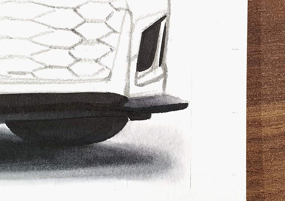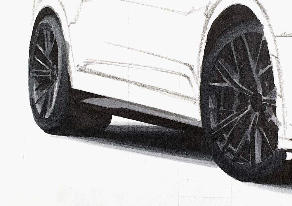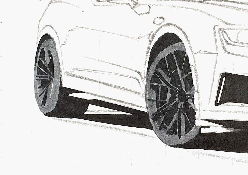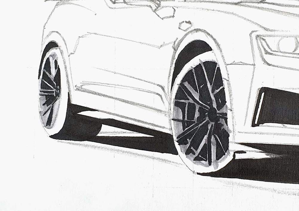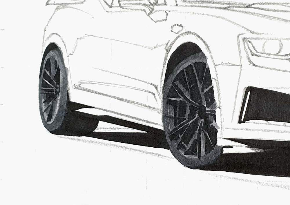 Then, I repeated those steps for the rear wheel and I sketched the outline of the shadow of the car.