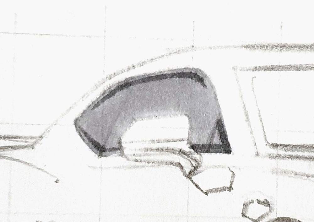 I hoped I could see my sketch through the dark grey of the grill, but I couldn't so I had to sketch the grill again to add the details...
