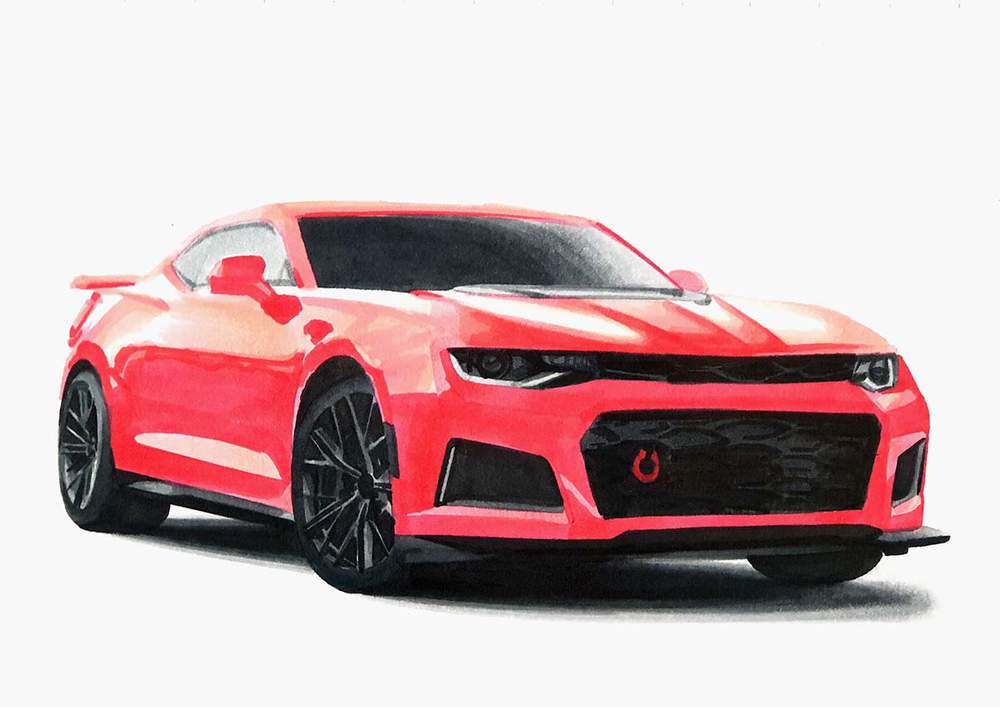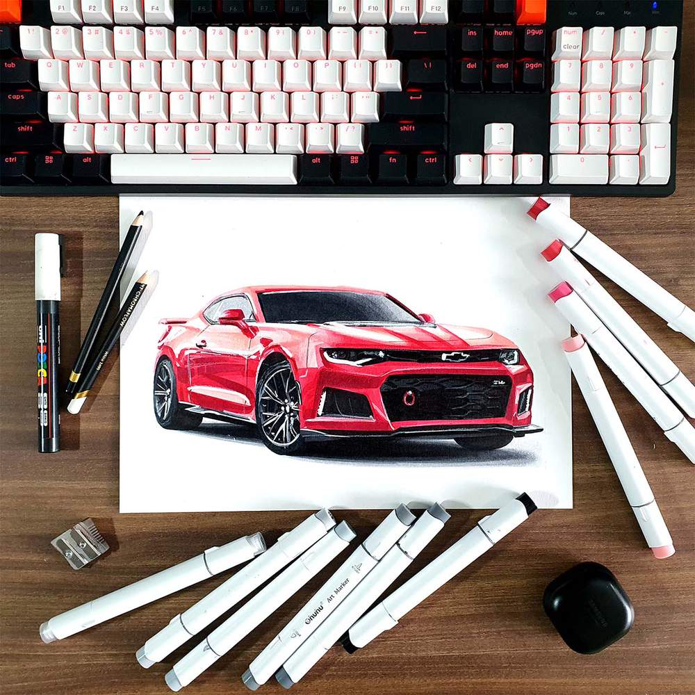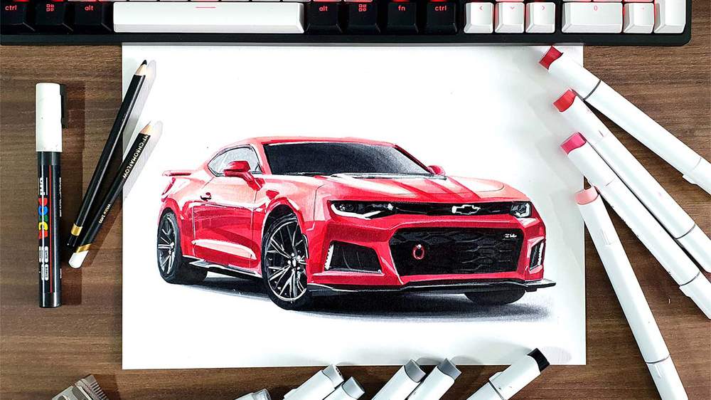 And that's how to draw a realistic Camaro ZL1 with markers.