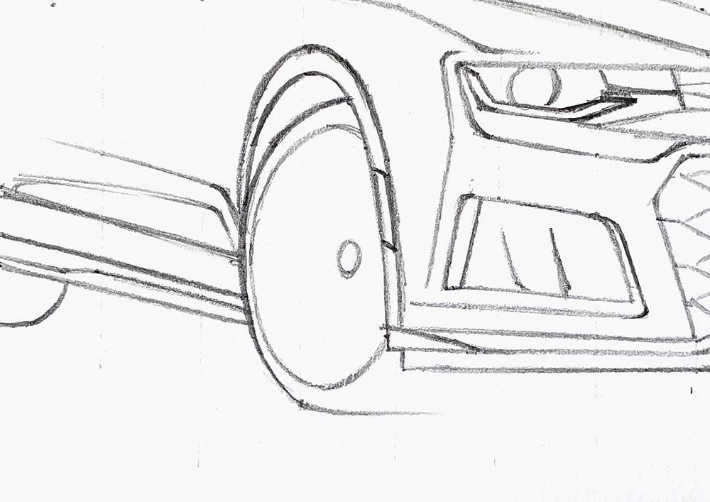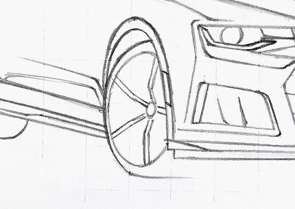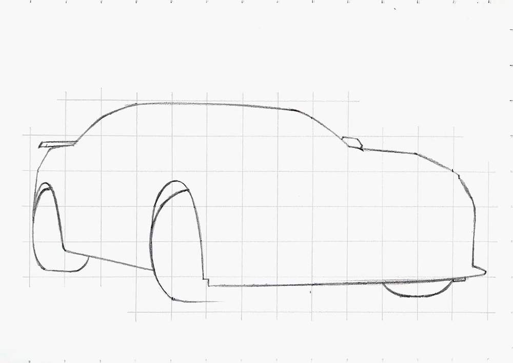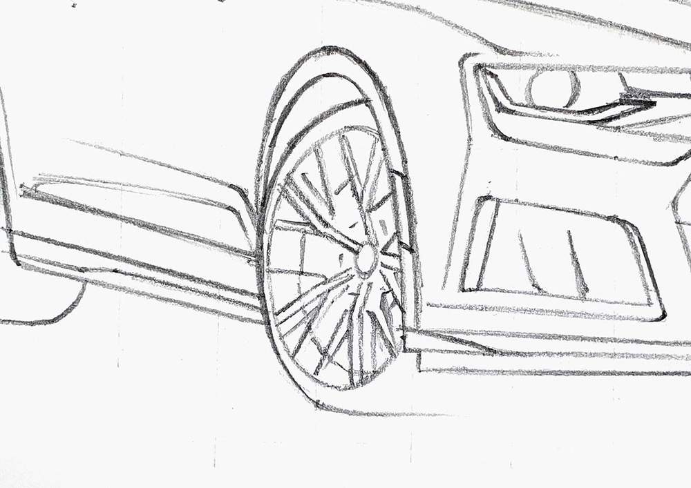 With the outer edge of the car in place, we can start sketching all the parts and details of the car.