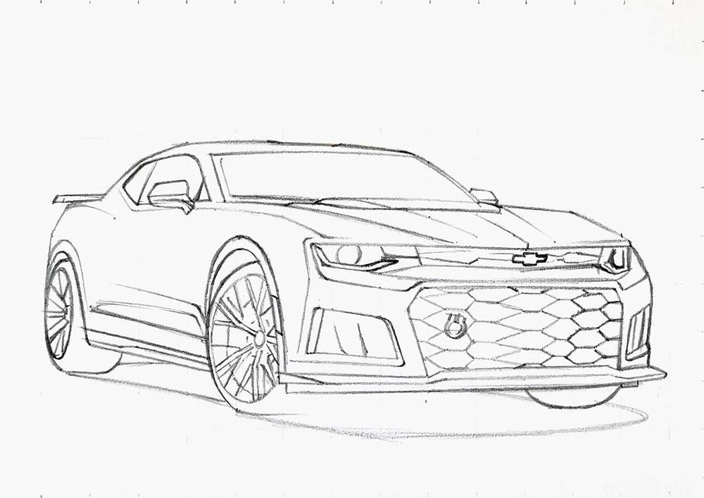 Step 2: Sketch The Basic Outline Of The Chevrolet Camaro ZL1
