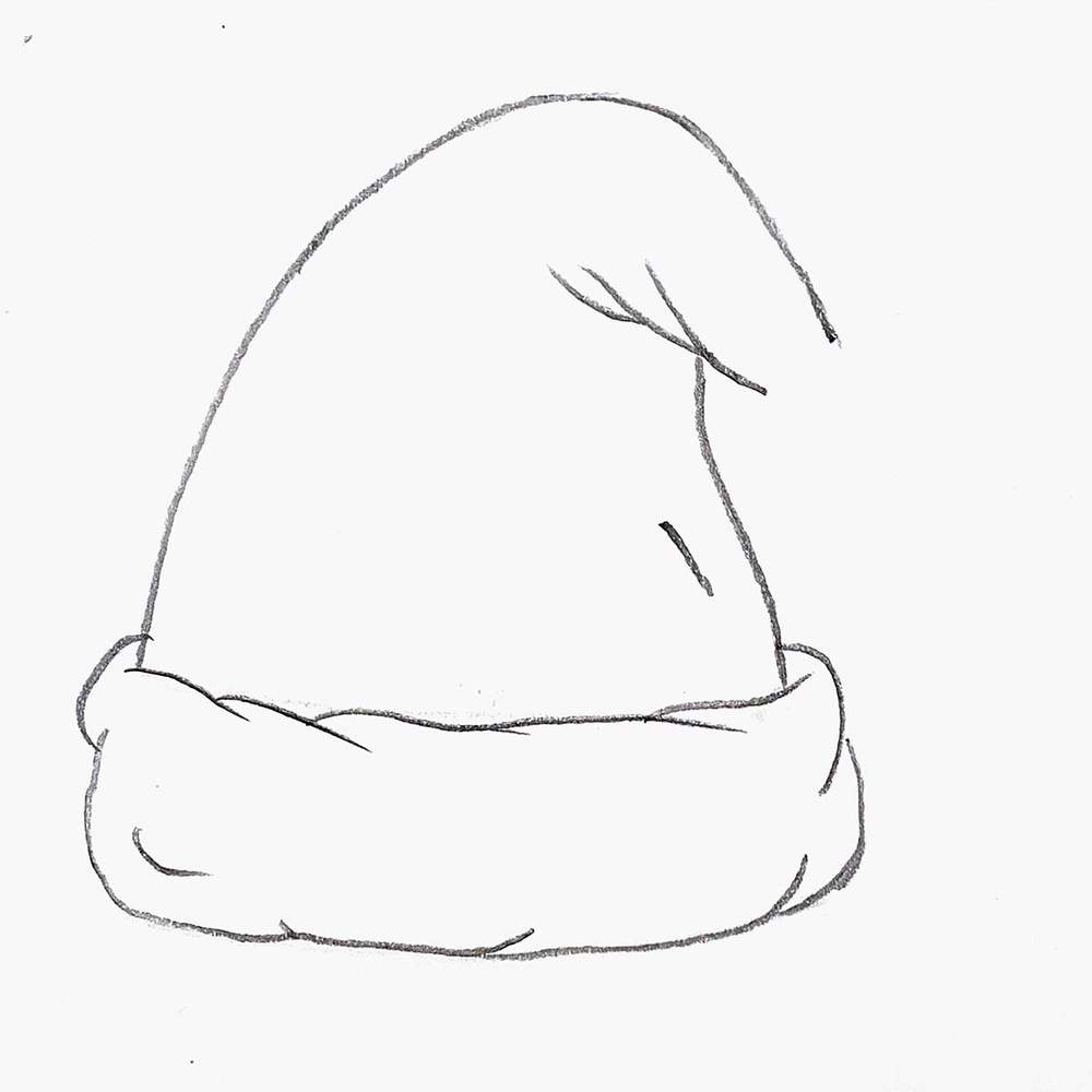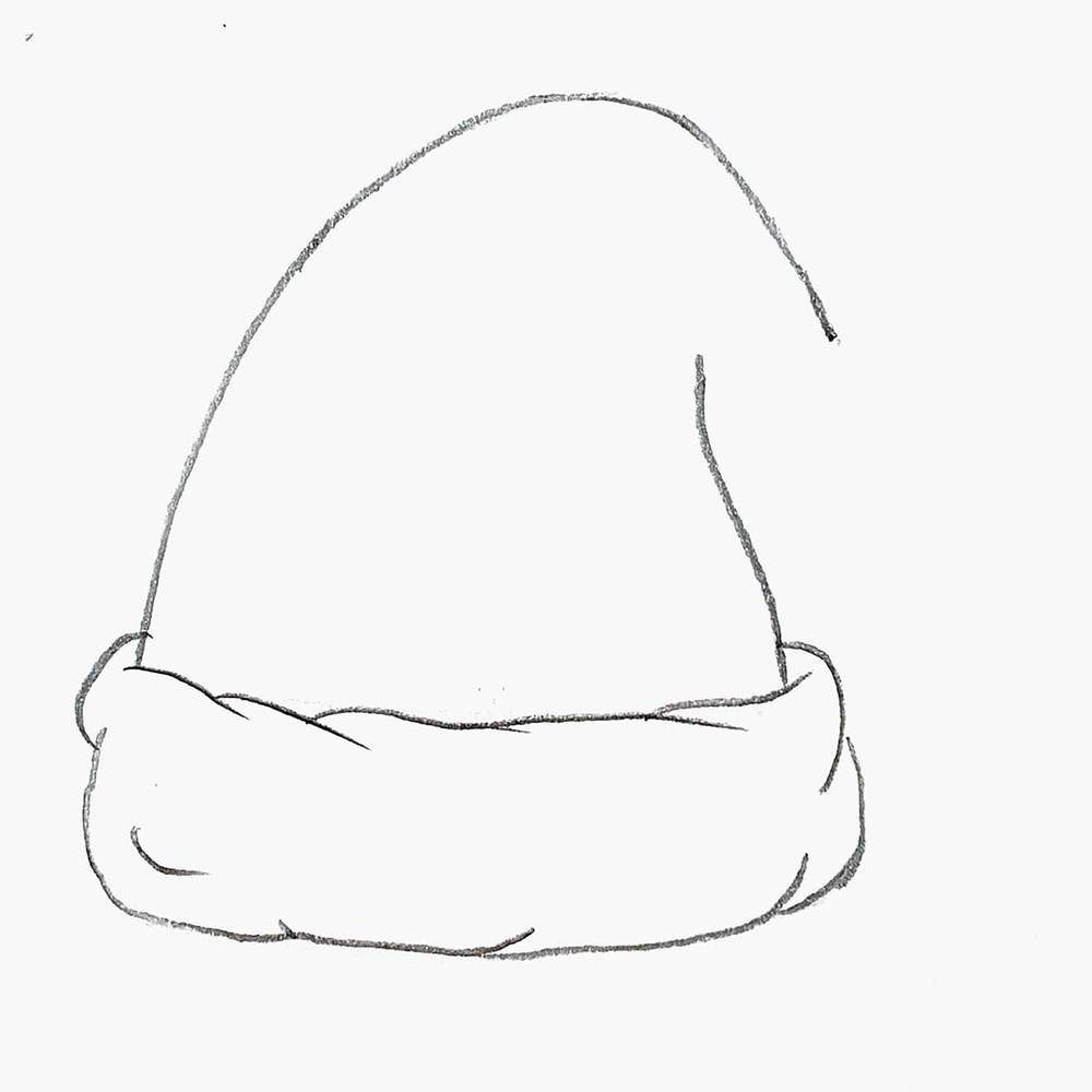 To draw a Christmas hat, I first sketched two curved lines at the bottom of my paper.