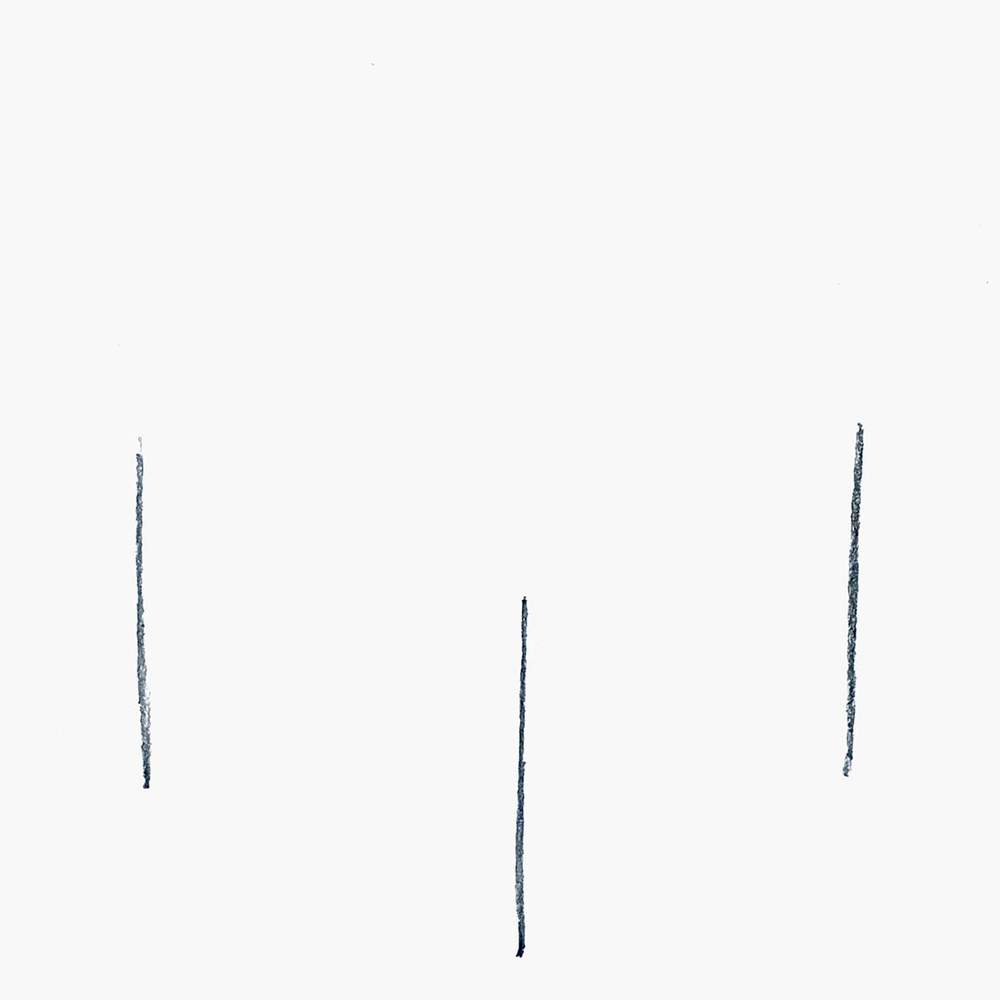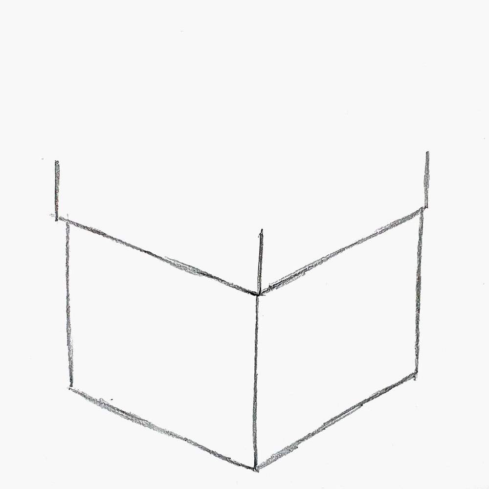 Start by sketching three vertical lines: one in the middle at the bottom of the paper, and one slightly higher on both the left and right sides.
