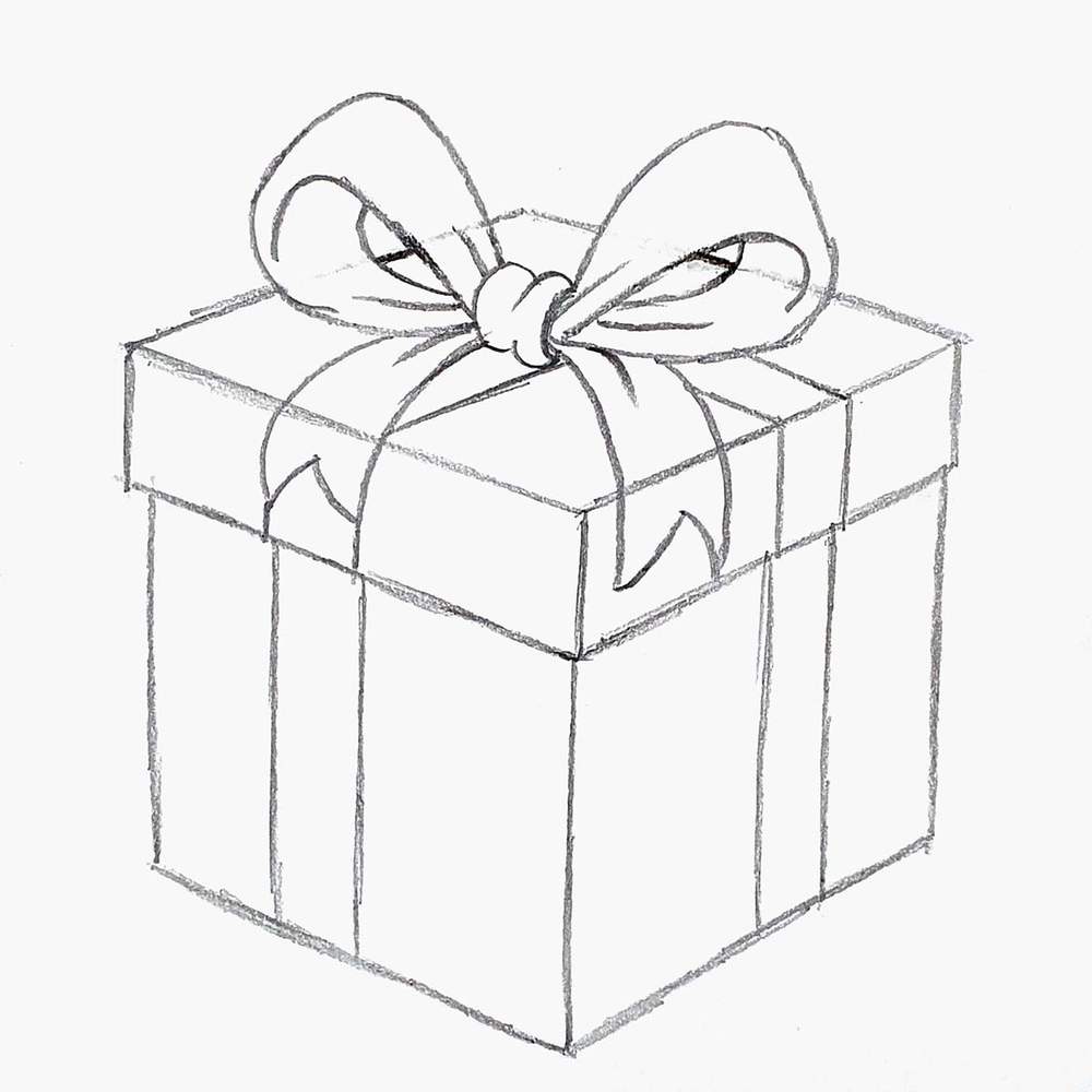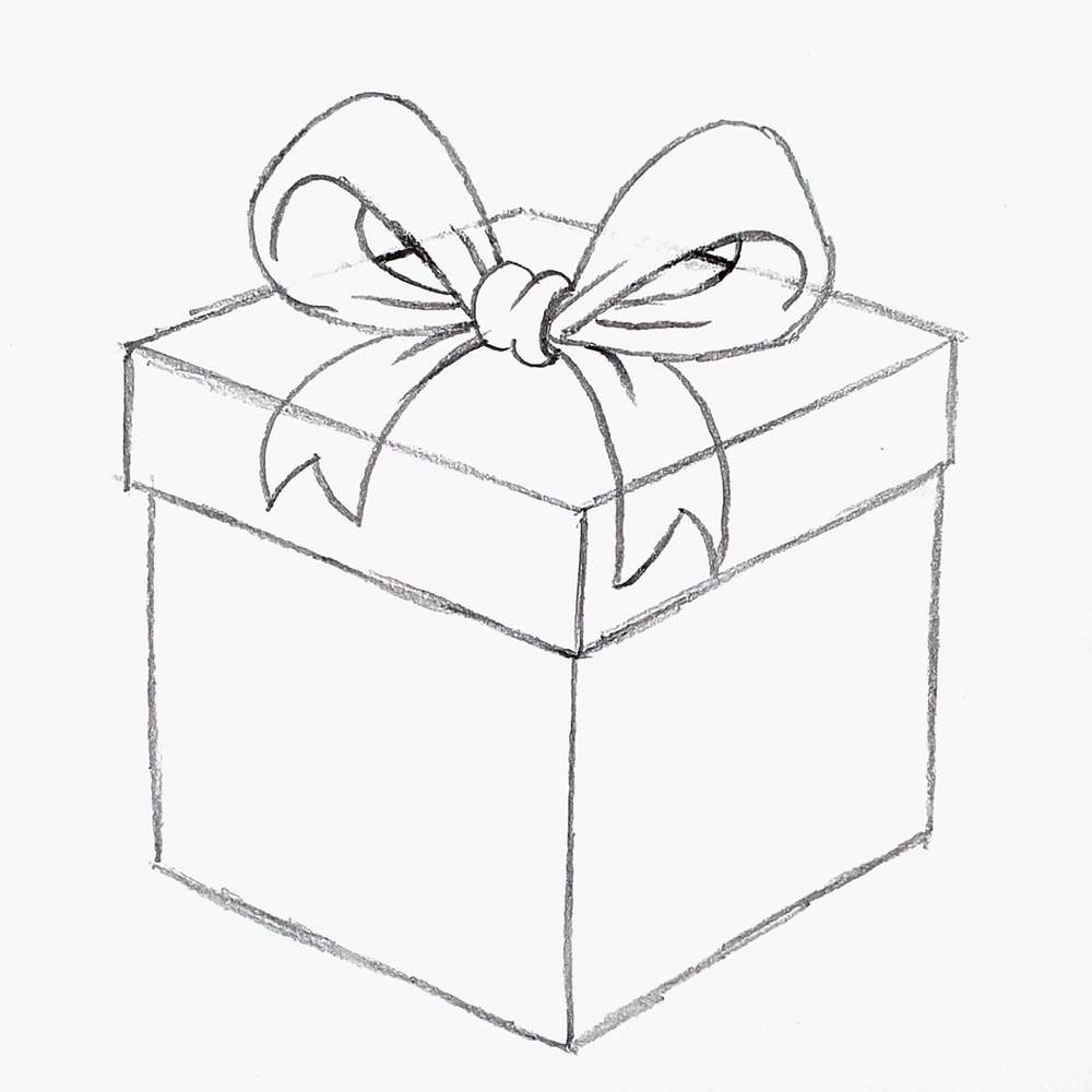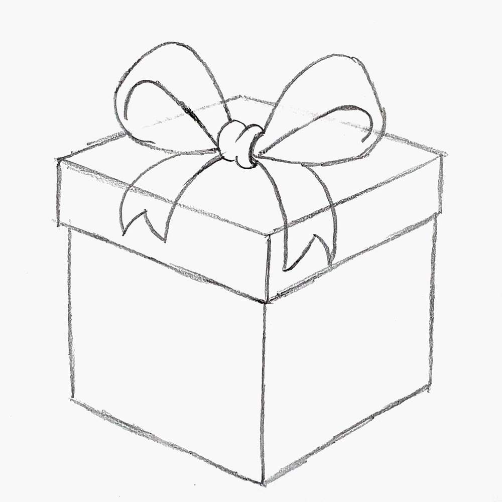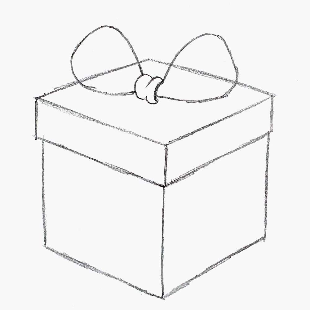 Presents usually have a cute decorative ribbon bow on them, which we're going to sketch now.
