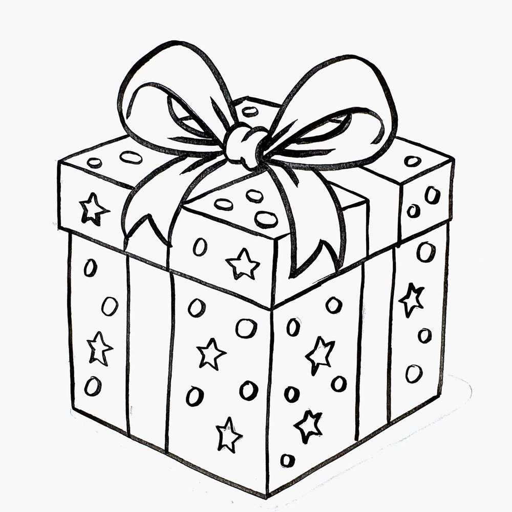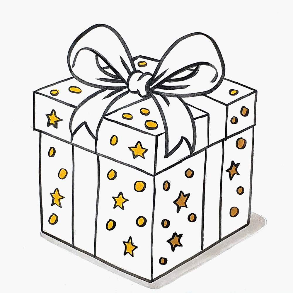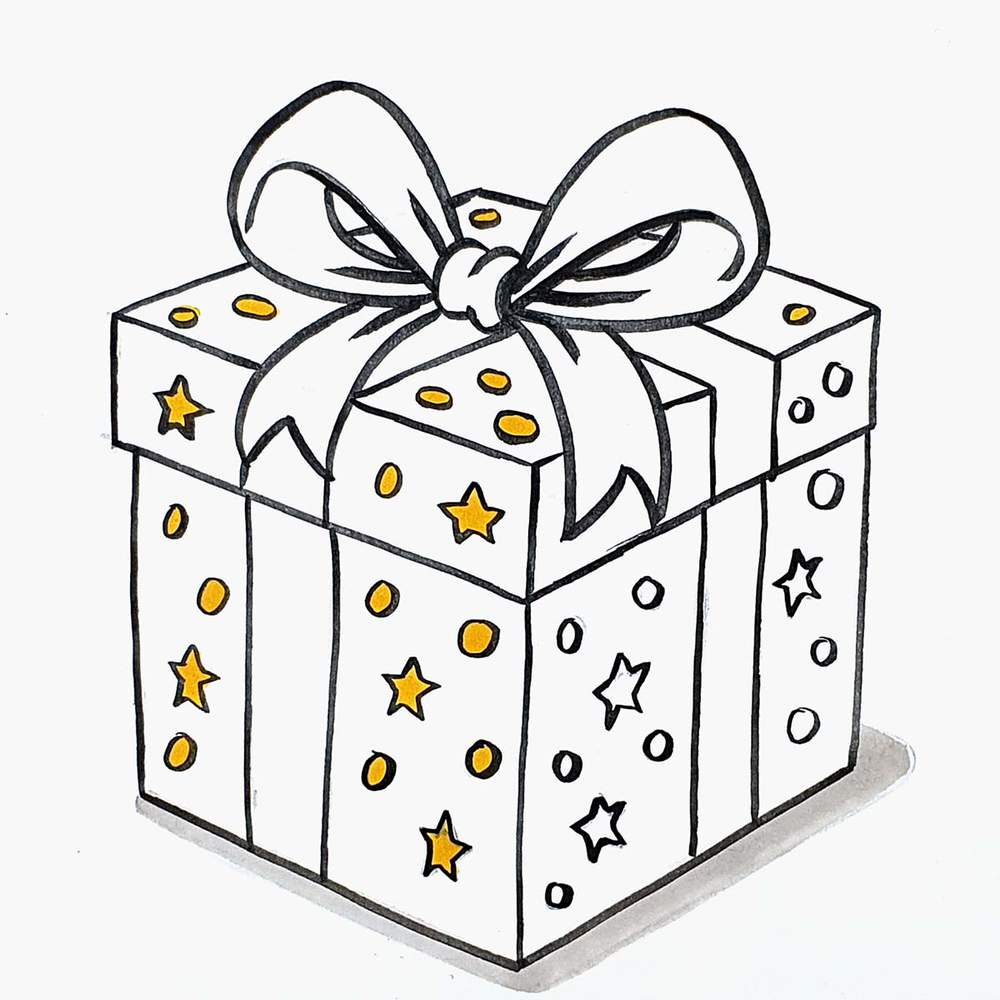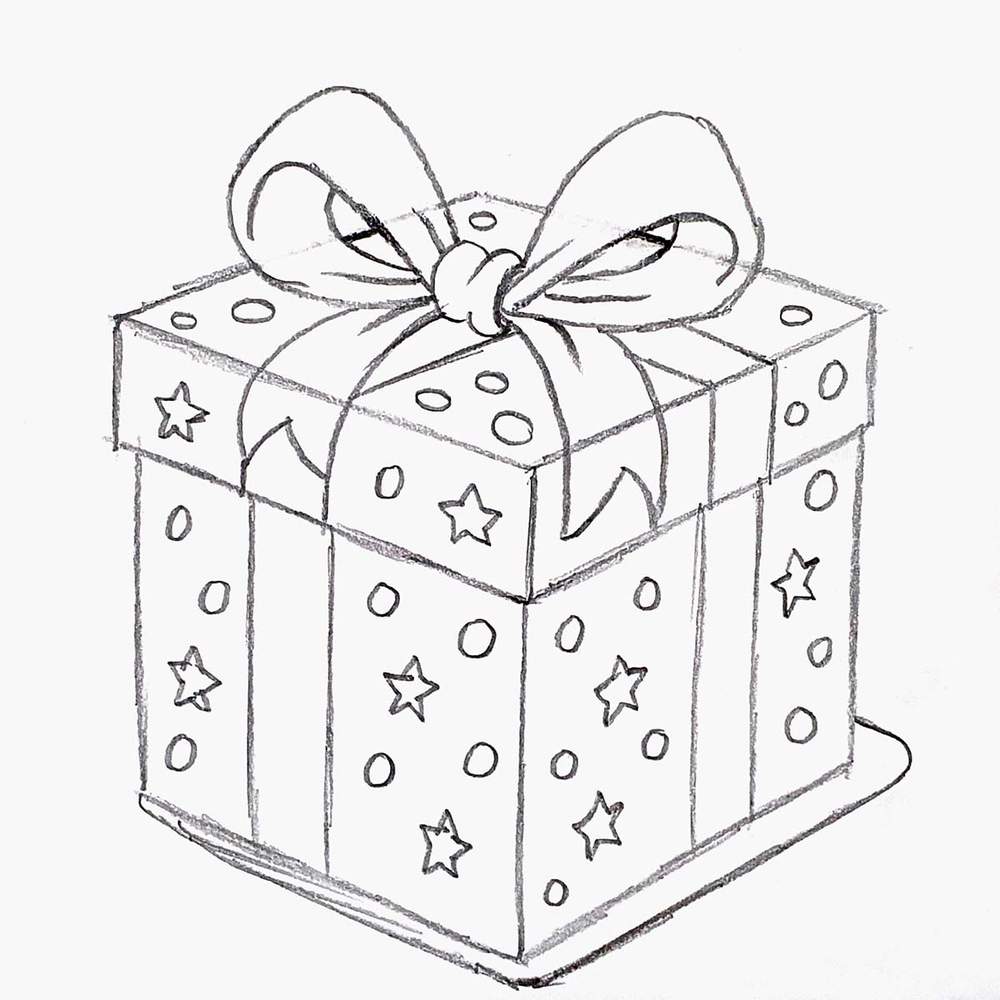 To complete the sketch of the Christmas present, I added decorative stars and circles on the box.