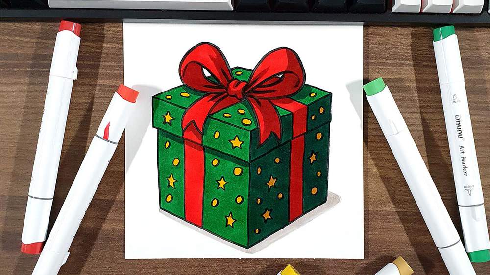 In this step-by-step tutorial, I’ll show you how to draw a classic Christmas present, complete with a ribbon, bow, and cute decorations.