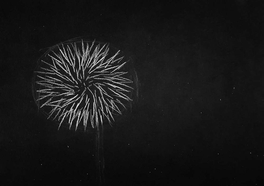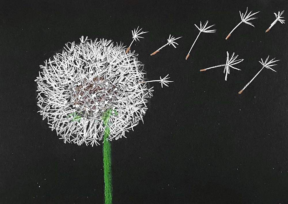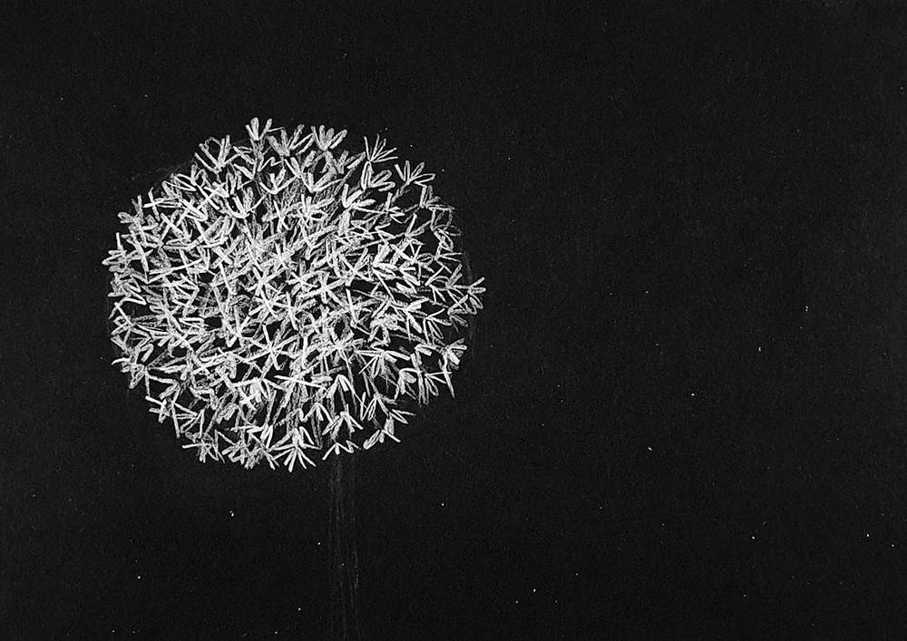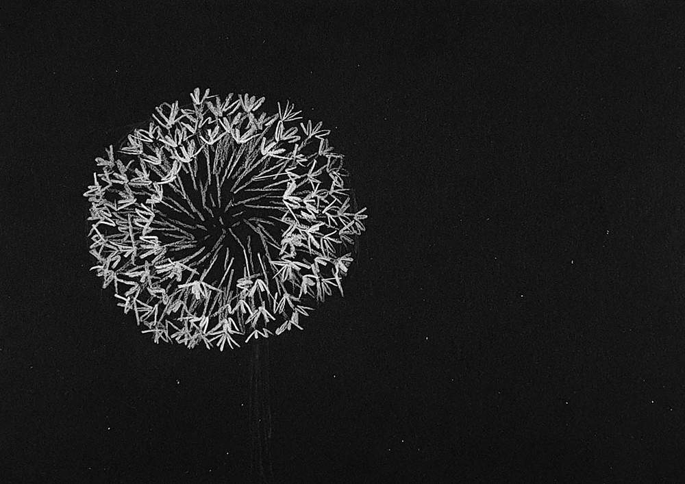 To draw a dandelion, I first sketched the outline on a piece of black paper.