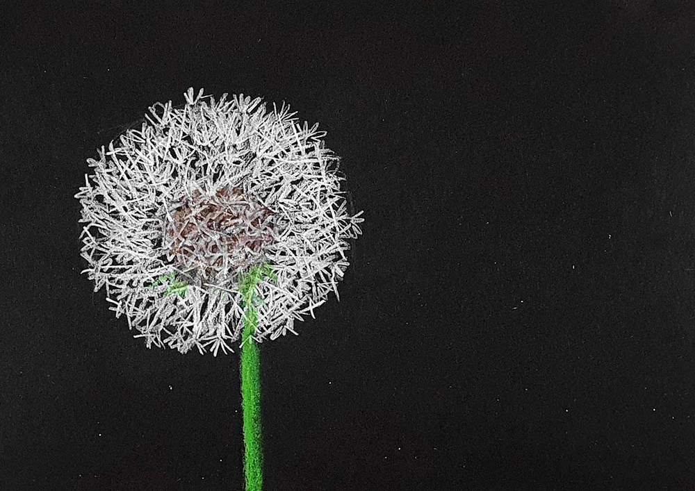 Lastly, I added some highlights on the heads of the seeds, especially in the center of the dandelion, with a white Posca paint marker.