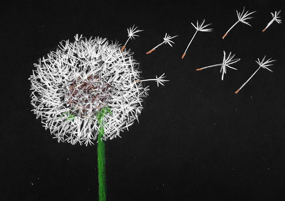 After that, I added some fly-away seeds by coloring some white lines kinda floating to the left of the dandelion.