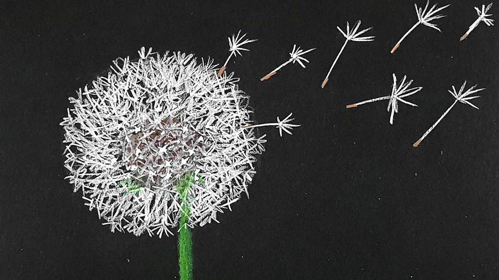 In this flower drawing tutorial, I'm going to show you how to draw a quick and simple dandelion with just 3 colored pencils and a piece of black paper.
