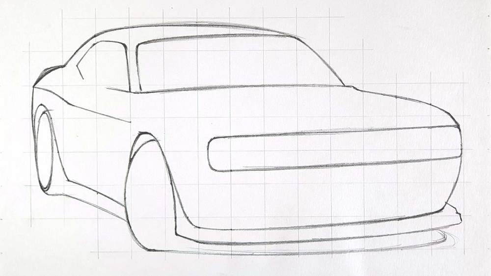 Step 1: Sketch the Basic Outline of the Dodge Challenger