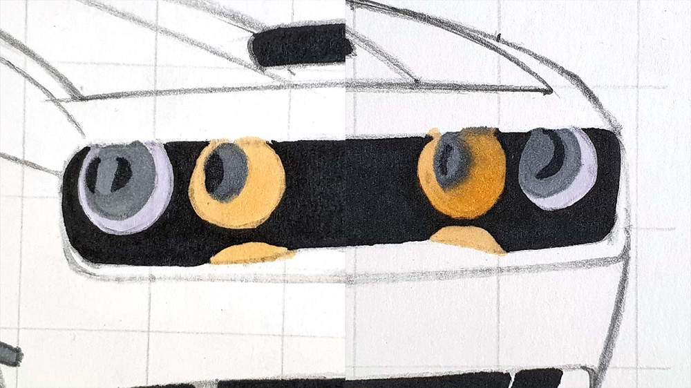 To finish the drawing off, I added some white highlights all over the car where it would make sense.