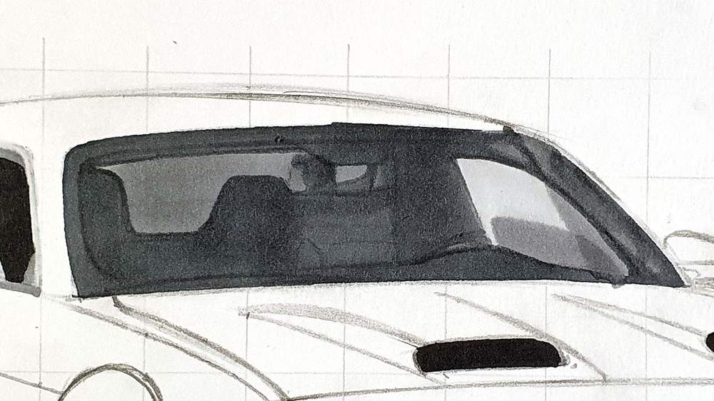 After all that preparation, it's finally time to start sketching the basic outline of the car.