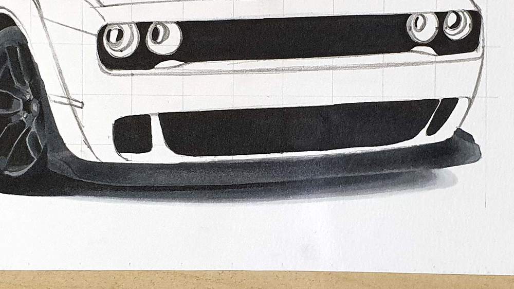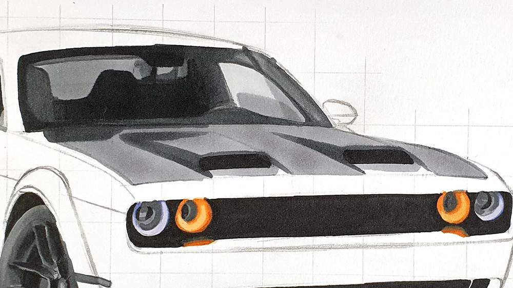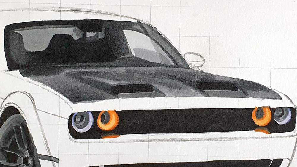 Now that the sketch is all done, we can finally move on to coloring the Dodge.