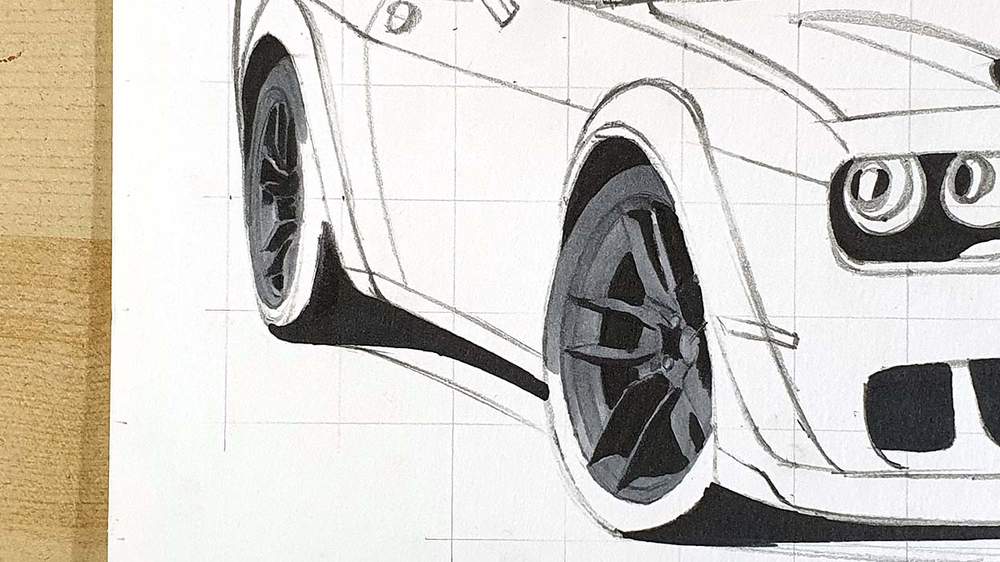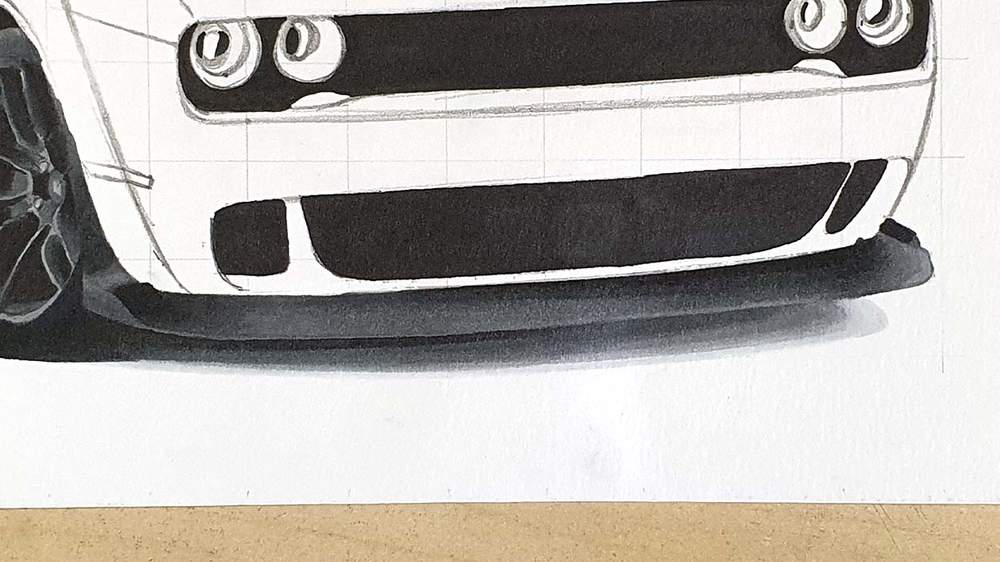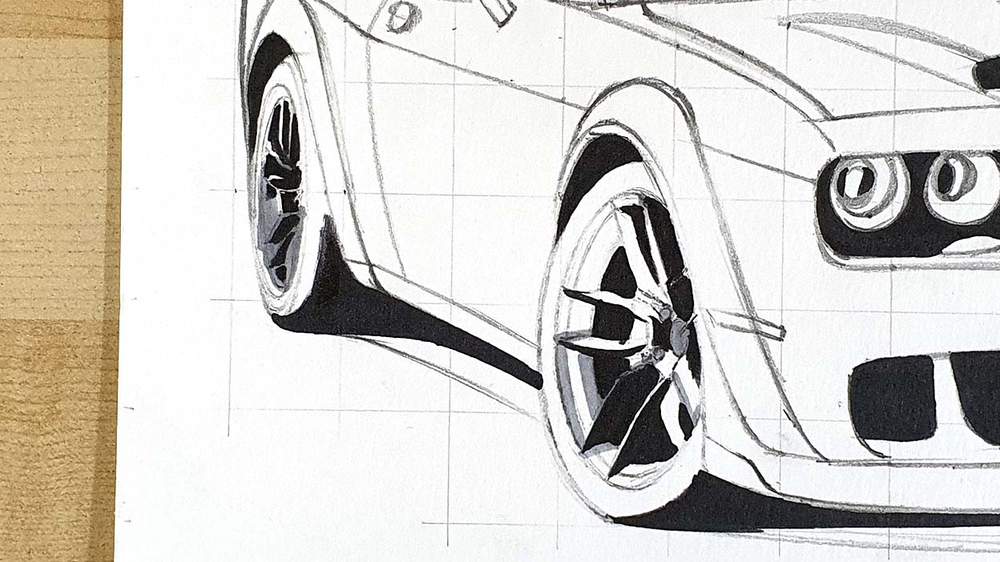 It's really important that you take your time when sketching the basic shape of the car as mistakes are quite hard to fix later on.