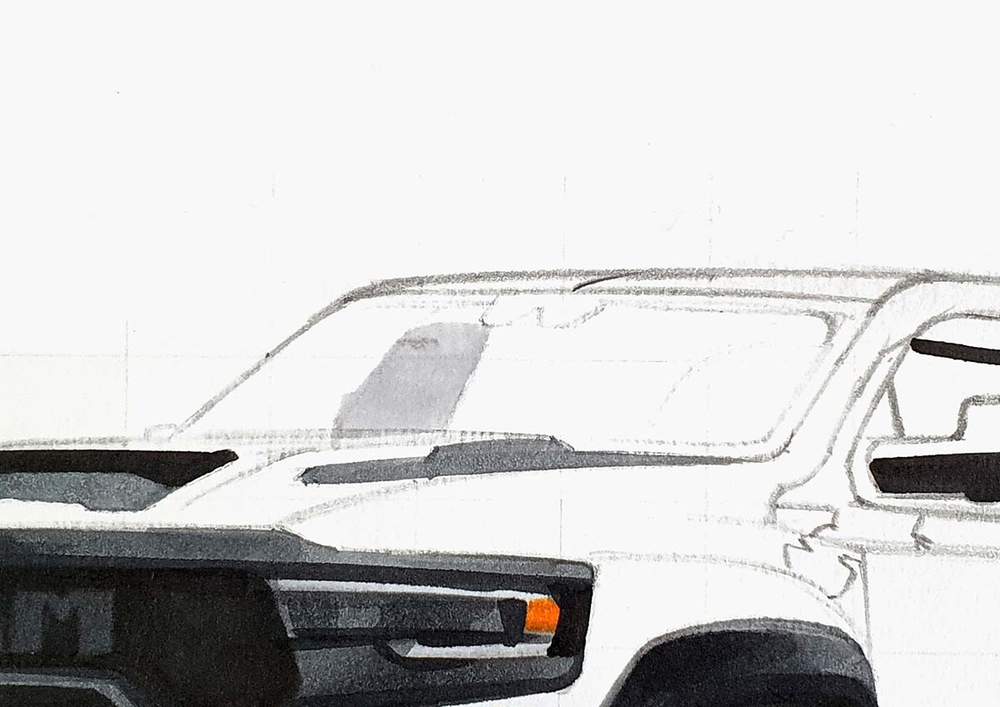 Using that reference photo, I started sketching the outline of the car.