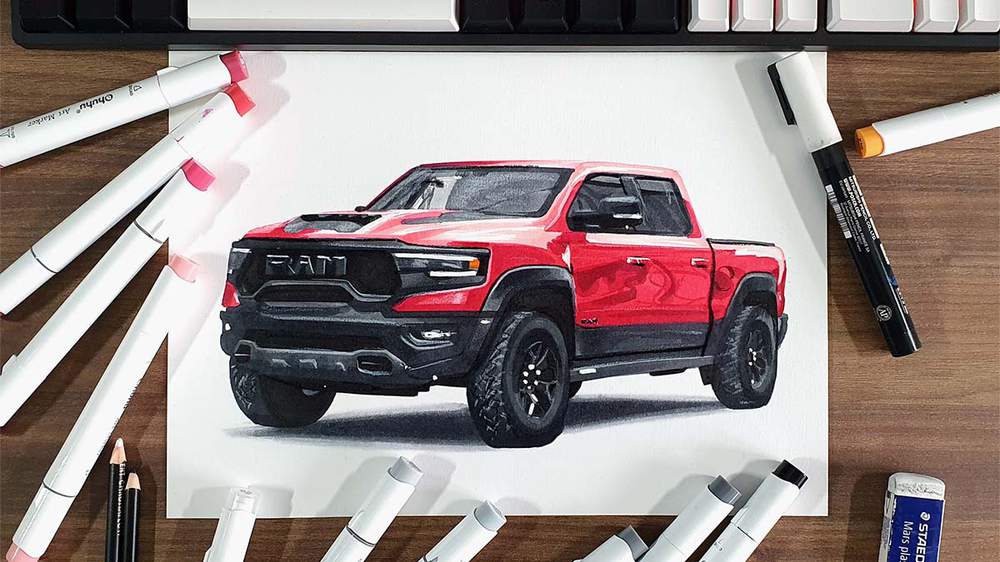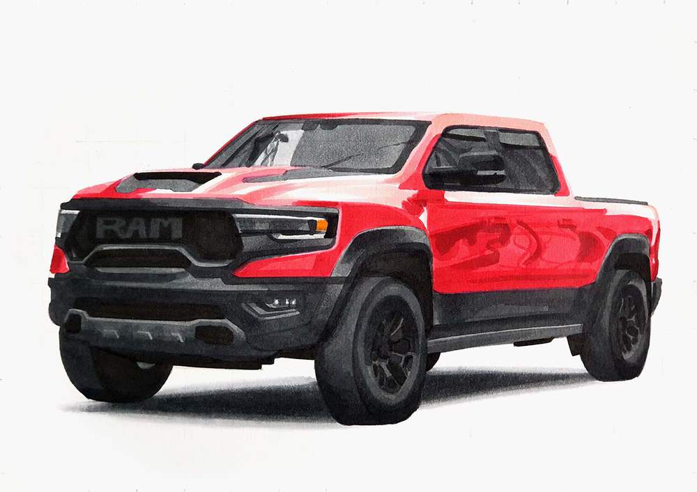 In this car drawing tutorial, I'm going to show you how to draw a realistic Dodge RAM truck, the RAM TRX, to be more specific.