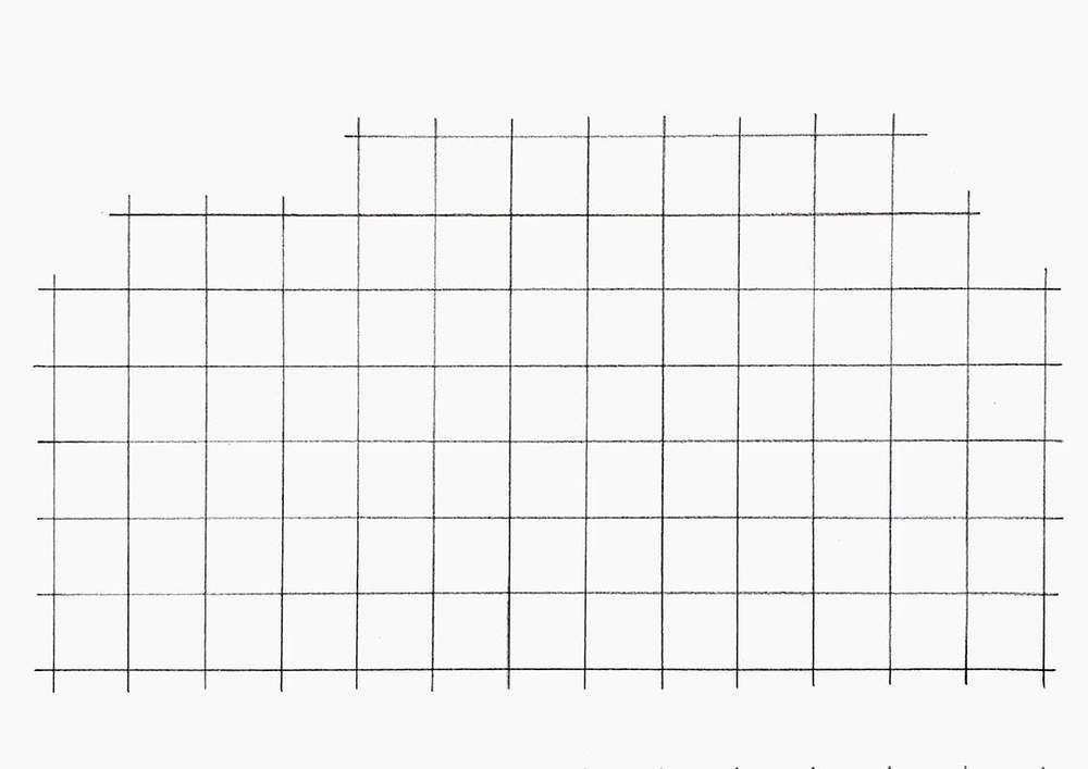Next, I recreated this grid on my paper. Each grid line is 2cm apart, and I only sketched the lines I marked in light blue.