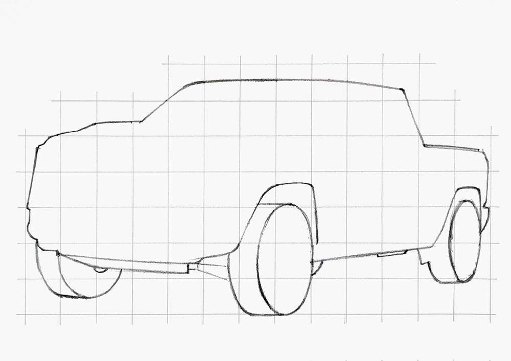 Next, you sketch the outline of the car.