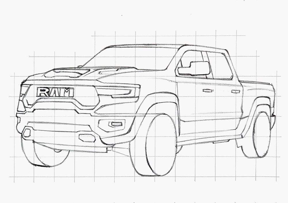 Step 3: Sketch The Parts & Details Of The Dodge RAM Truck