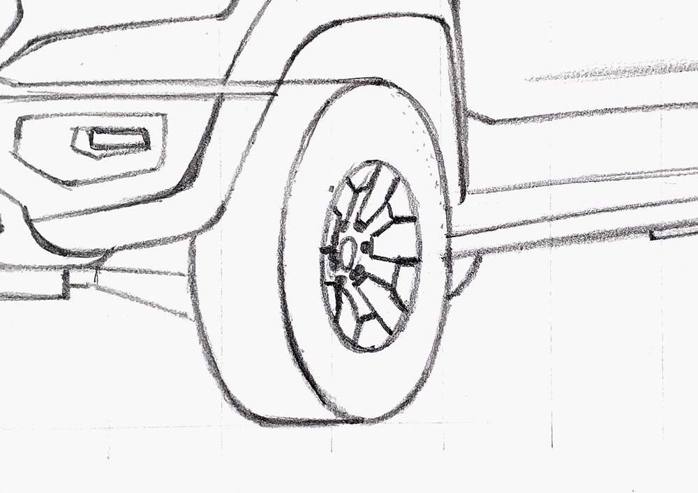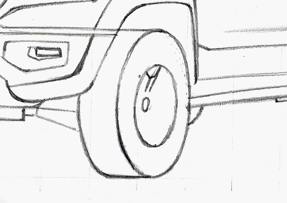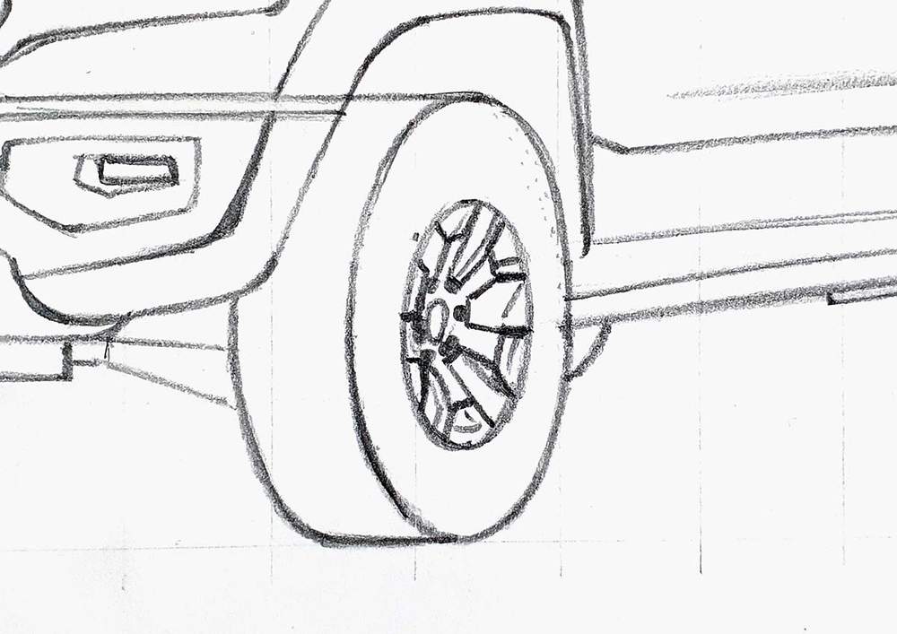 I already sketched the outline of the wheels in step 2, and now we're going to add the details to it.