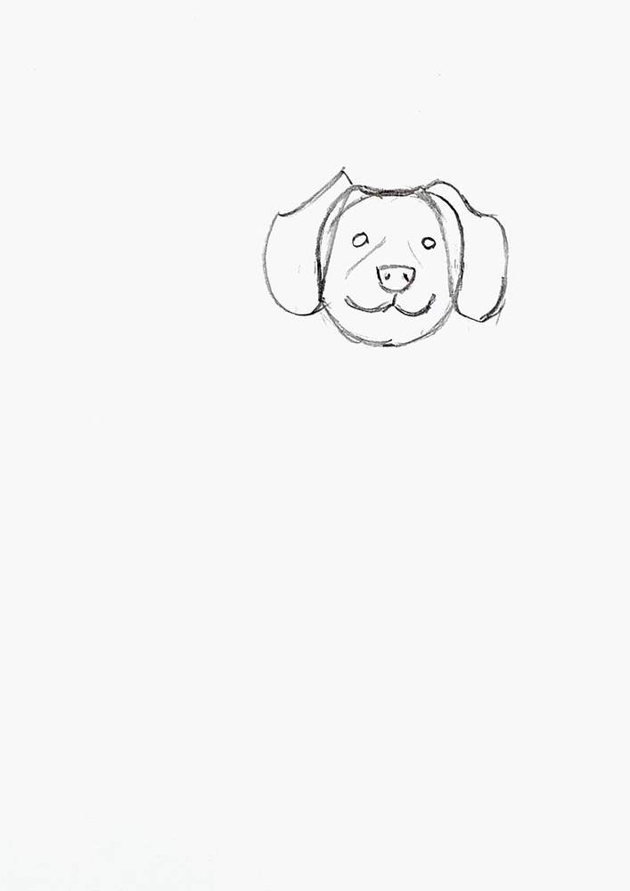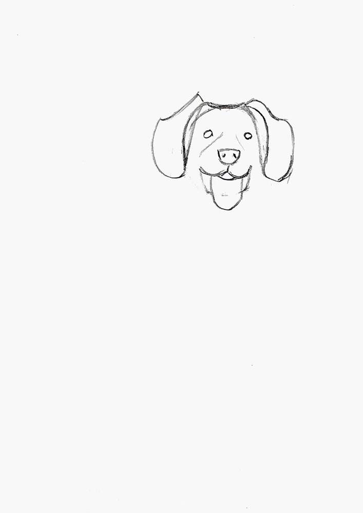 Step 2: Sketch The Dog's Nose, Ears, Eyes, And Mouth