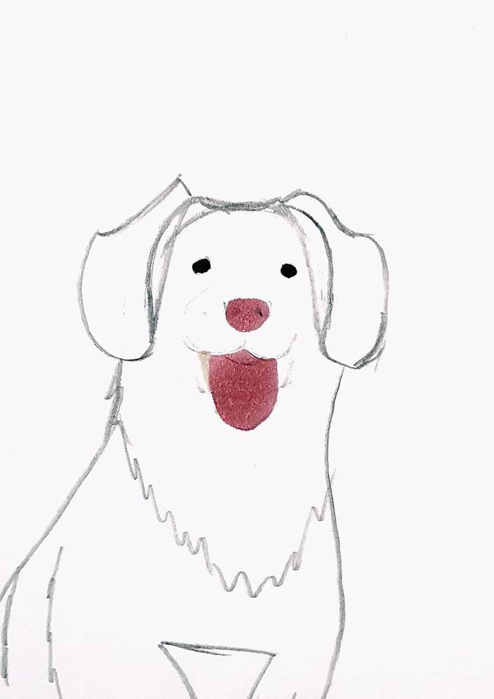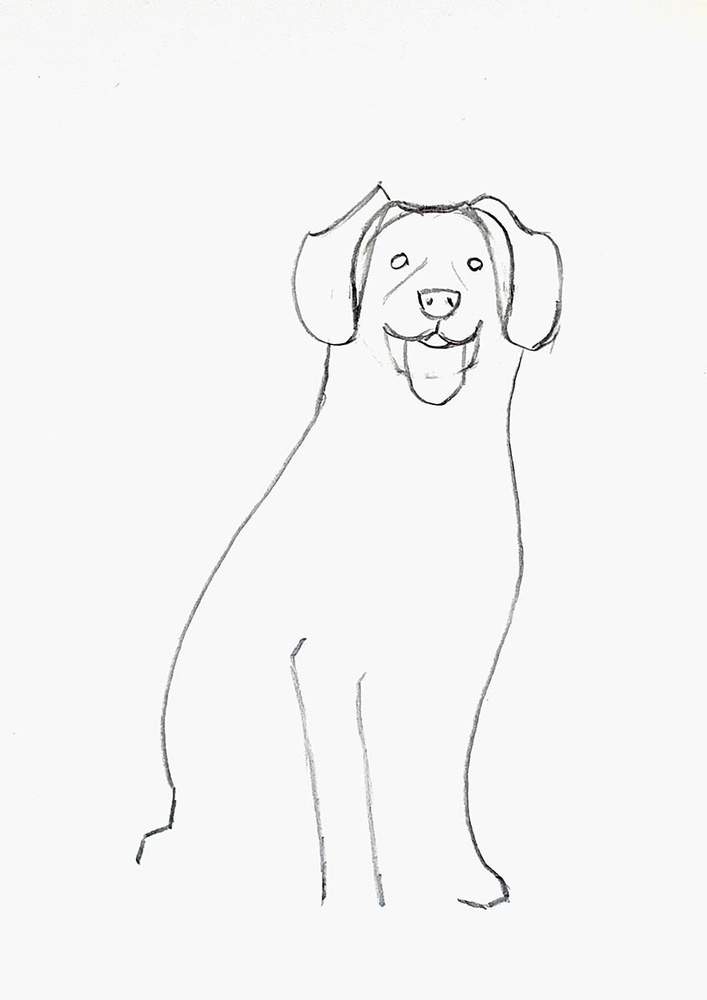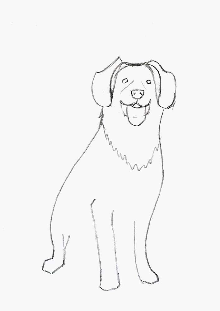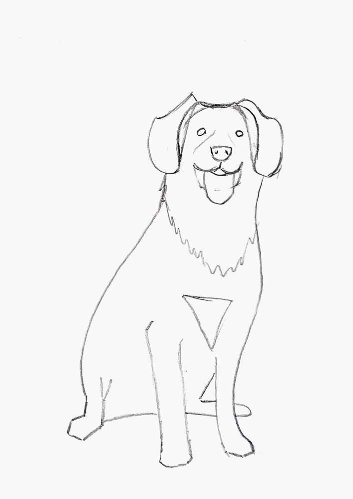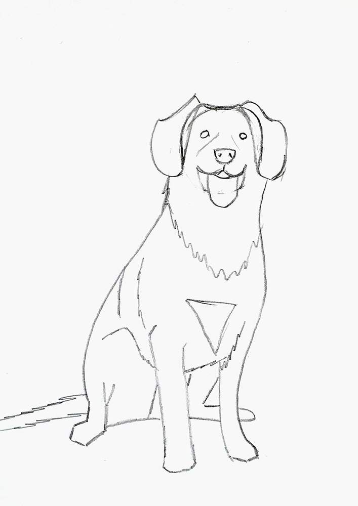 Next, I sketched the dog's back on the left side and the chest plus a bit of his front leg on the other side.
